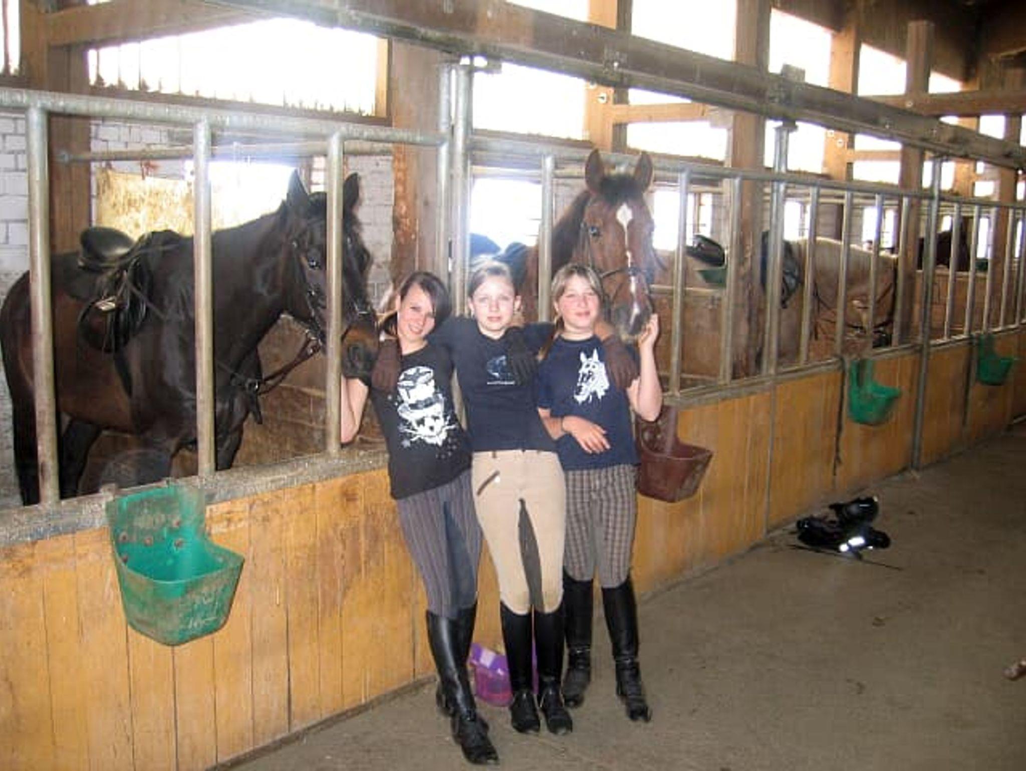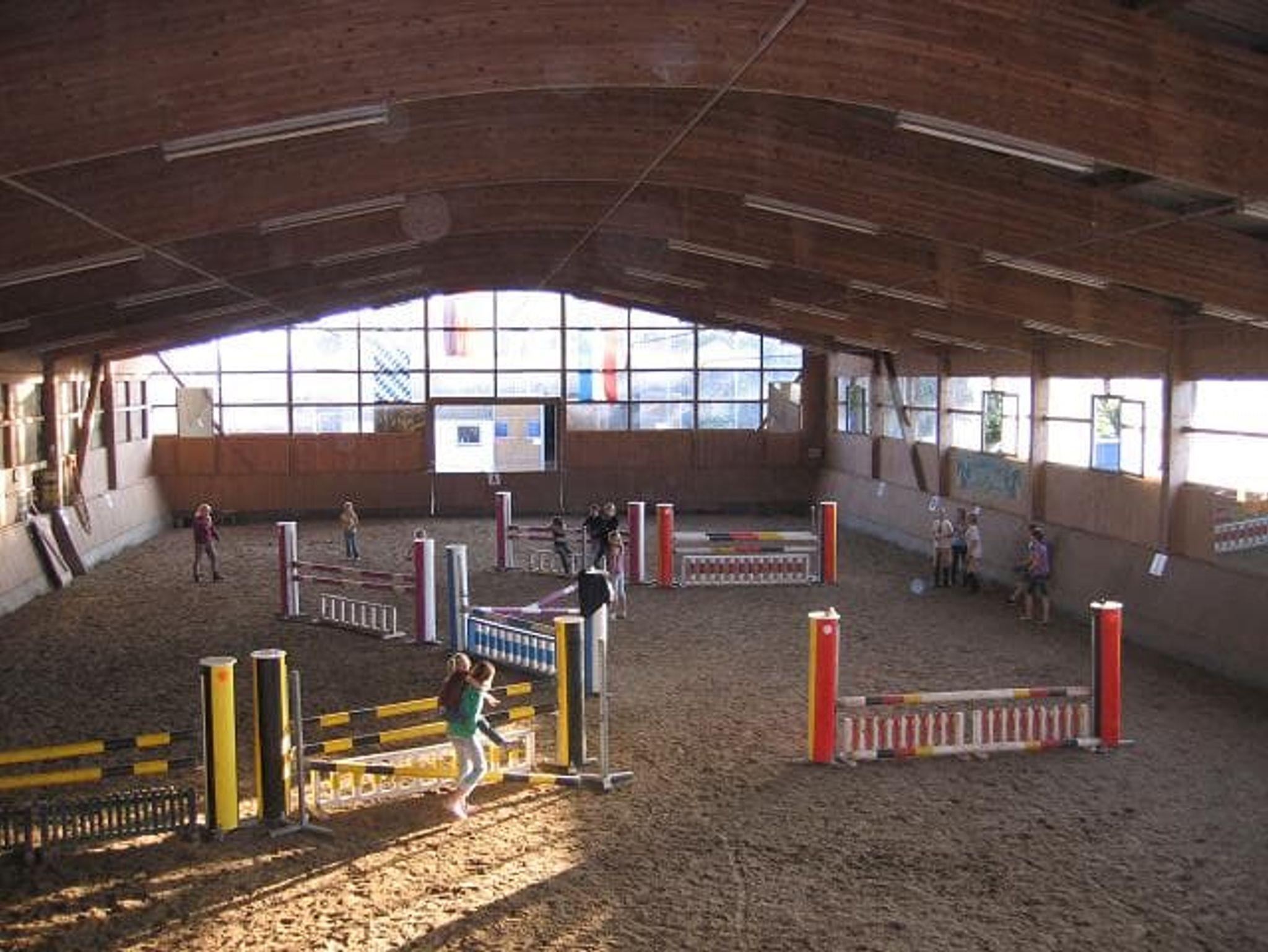 Qualifizierte FN-Reitlehrerinnen unterrichten Sie auf unseren 60 braven und gutausgebildeten Pferden/Ponys in 3 Reithallen + Freiplatz oder führen Sie auf einem erholsamen Ausritt in die herrliche Natur am Eixendorfer See.