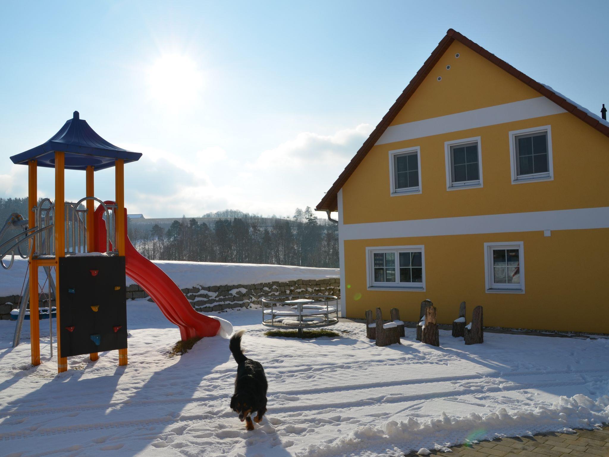 Spielplatz und Basketballkorb direkt auf dem Grundstück und einige Brett- und Kartenspiele, sowie Malstifte, gibt es in den Häusern auch :-)