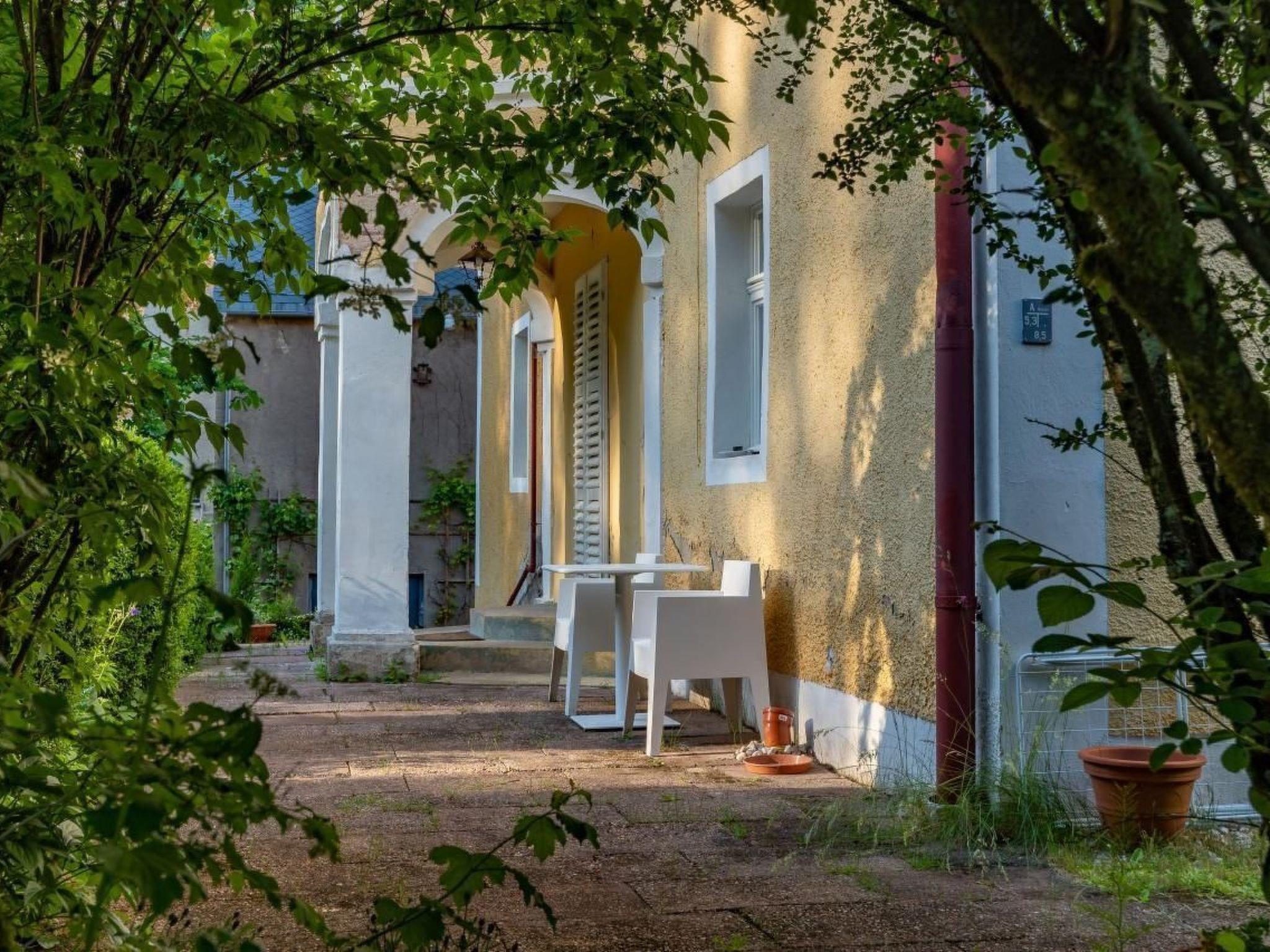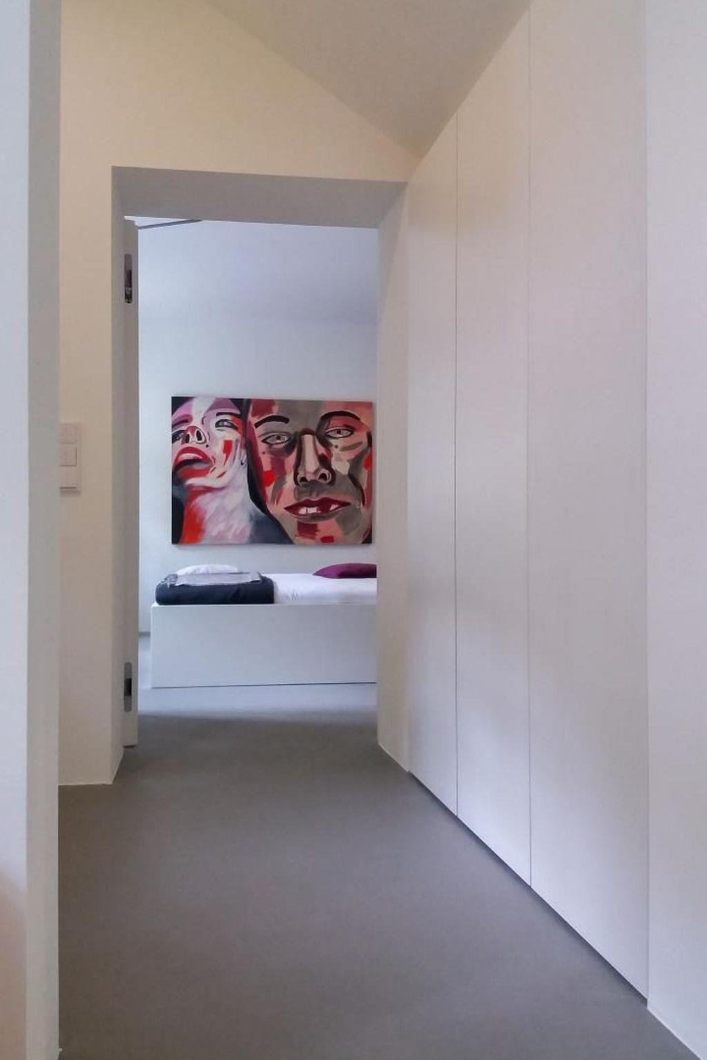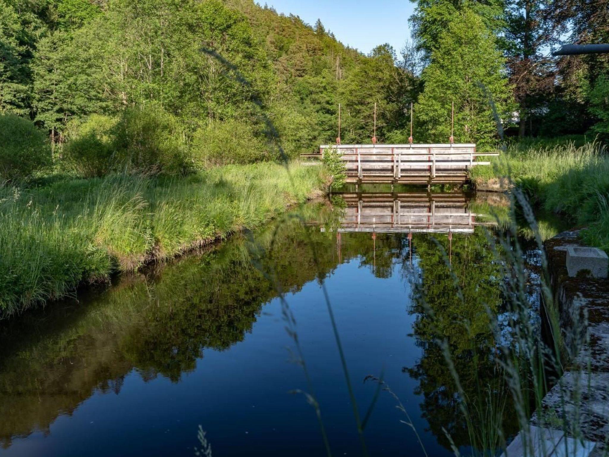Time out in Mittermurnthal - MODERN - MINIMALIST .... Guests at the Mittermurnthal holiday flat in the Upper Palatinate Forest Nature Park can expect an exciting setting of green parkland, industrial relics and minimalist design. The flat is surrounded by meadows and forests on the site of a former glass grinding and polishing works directly on the Schwarzach river in the wildly romantic Murnthal. The region used to be an important location for glass grinding, an industry that has long since died out. Today you can enjoy peace and nature here. Hikers, cyclists, anglers and nature lovers come here to enjoy their sporting activities. The listed property is a three-sided complex consisting of a residential building from 1913, a former glass warehouse and a former foreman's building. The 100 square metre holiday flat on the ground floor of the villa is accessed via a wooden staircase from the courtyard. The comfortable furnishings and the purist, straightforward interior design contrast with the morbid charm of the exterior. We have renovated a spacious, luxurious holiday flat for two people on the ground floor of the historic villa. The interior of the listed building has been furnished with modern design, while the exterior has retained its morbid charm.