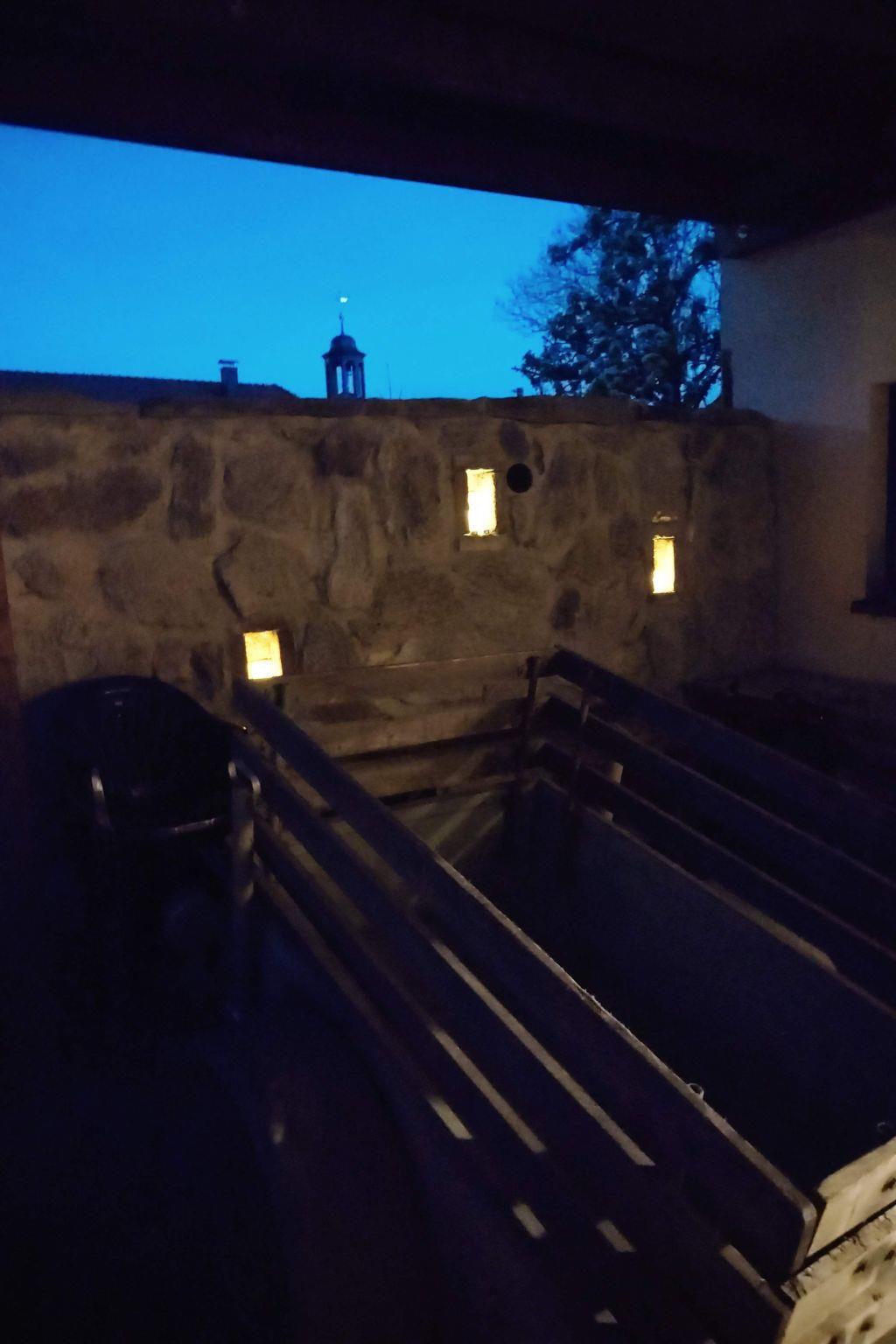 The outdoor area of the farmhouse invites you to relax in the greenery with a fenced garden for communal use. Here your dogs can run and play safely while you enjoy the fresh air and peaceful atmosphere. There is also a washing machine for communal use, which is particularly practical for longer stays.