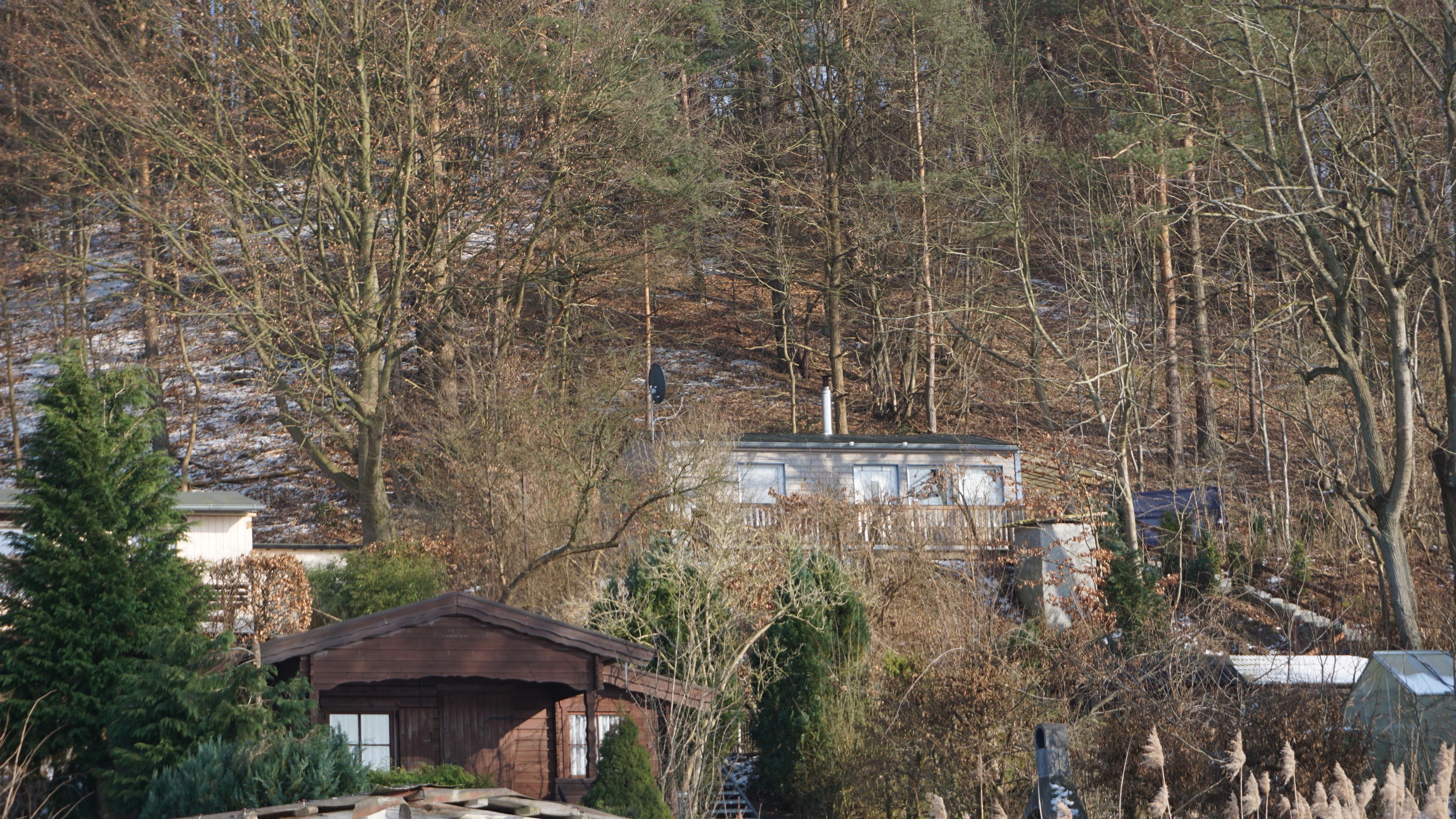 Der Bungalow liegt an einem Hang und ist über ca. 15 Stufen erreichbar .