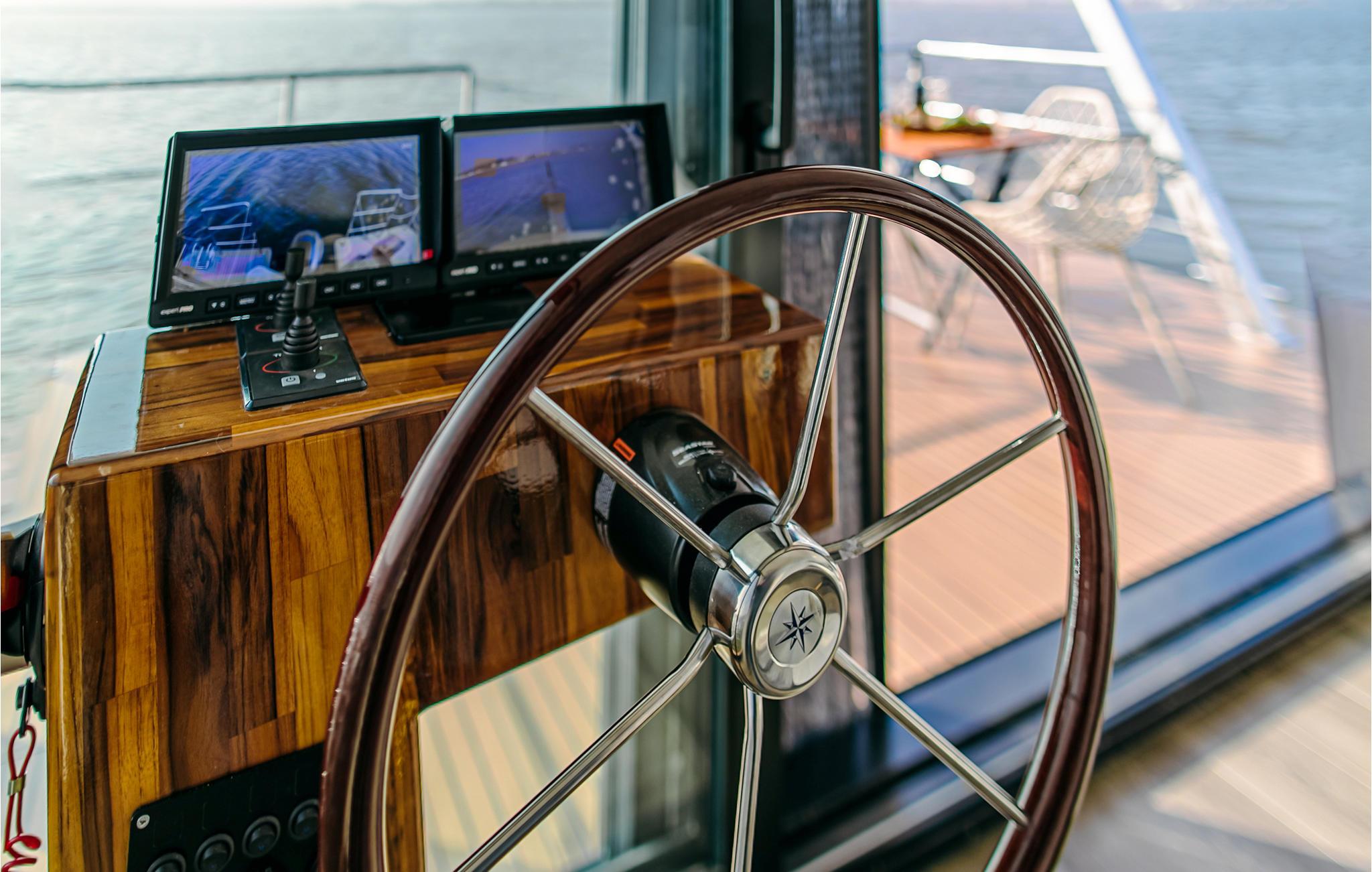 Udstyret med teak-elementer, to kørekameraer, en 130 hk-motor, samt bov- og hækpropel sørger for, at I har alt til et førsteklasses haveventyr.