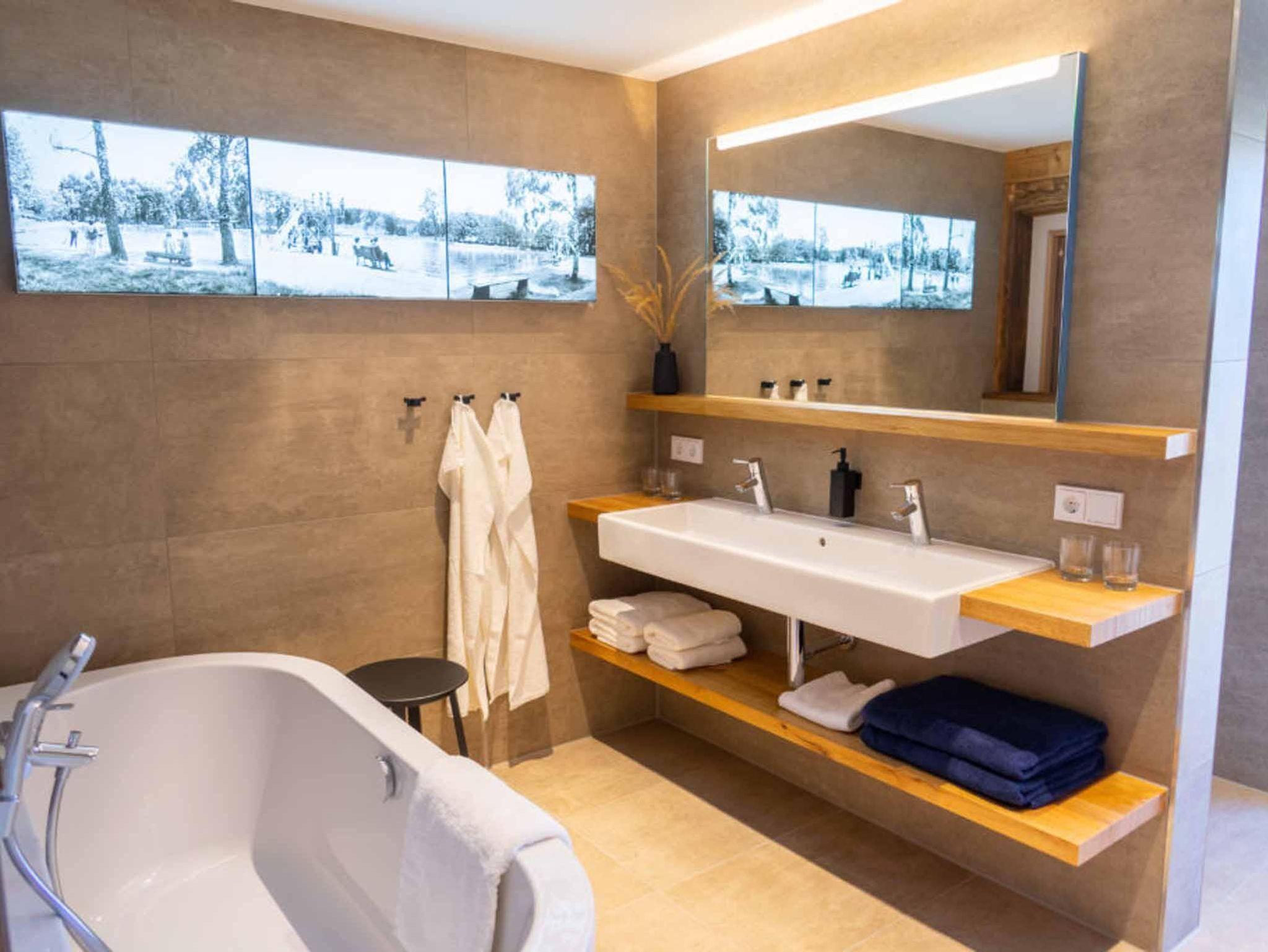 Bad/Sanitär: Dusche, Badewanne, WC, separates WC, Sauna, Föhn