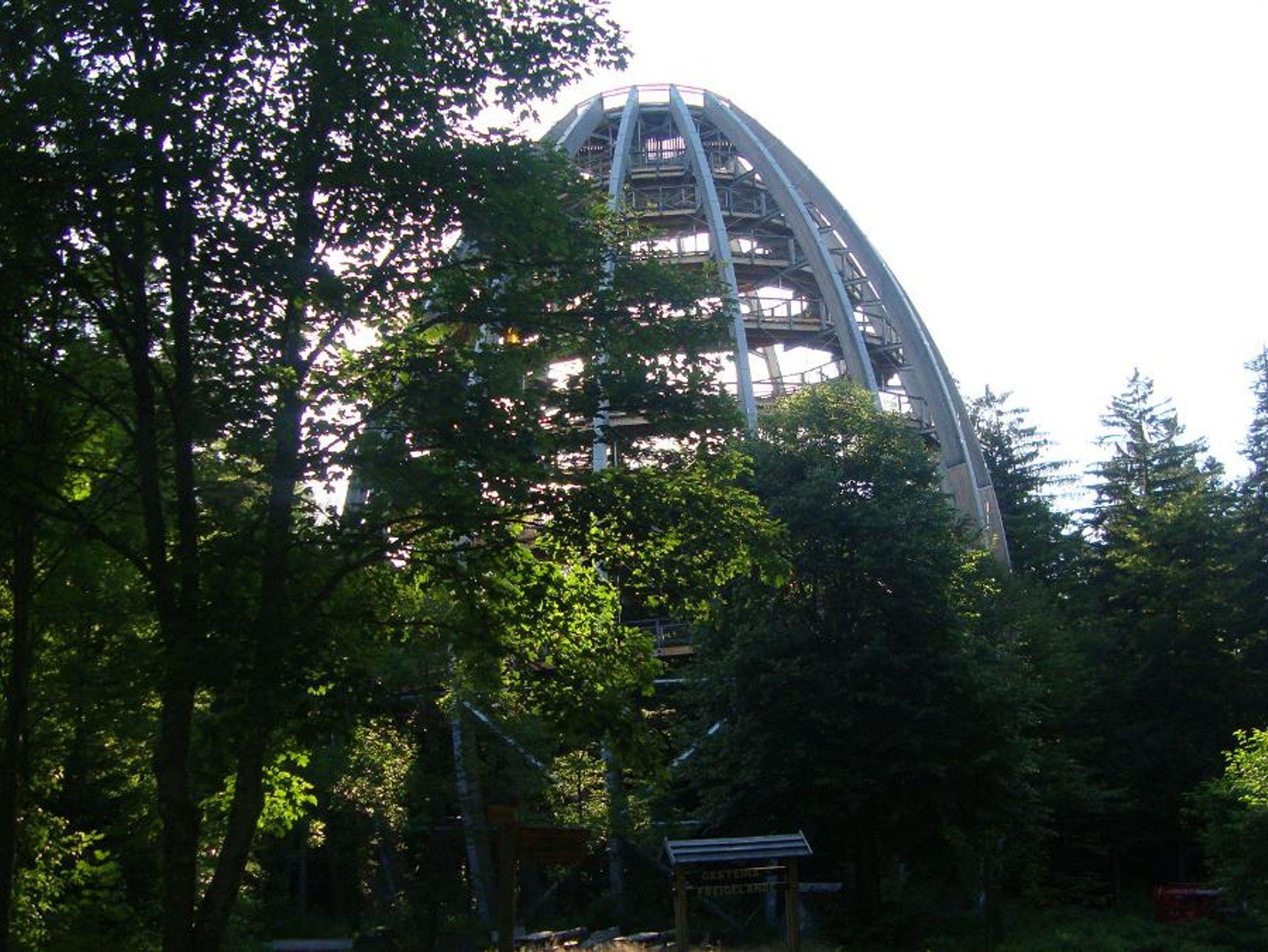 Unsere Wohnung Nr. 4 hat ein Schlafzimmer mit Doppelbett und ein Schlafzimmer mit zwei Einzelbetten, Wohnküche mit Küchenzeile und Esstisch, Polsterecke, Bad mit WC und Dusche und einen großen Balkon mit Gartenmöbeln mit Blick zum Baumwipfelpfad im Nationalpark .