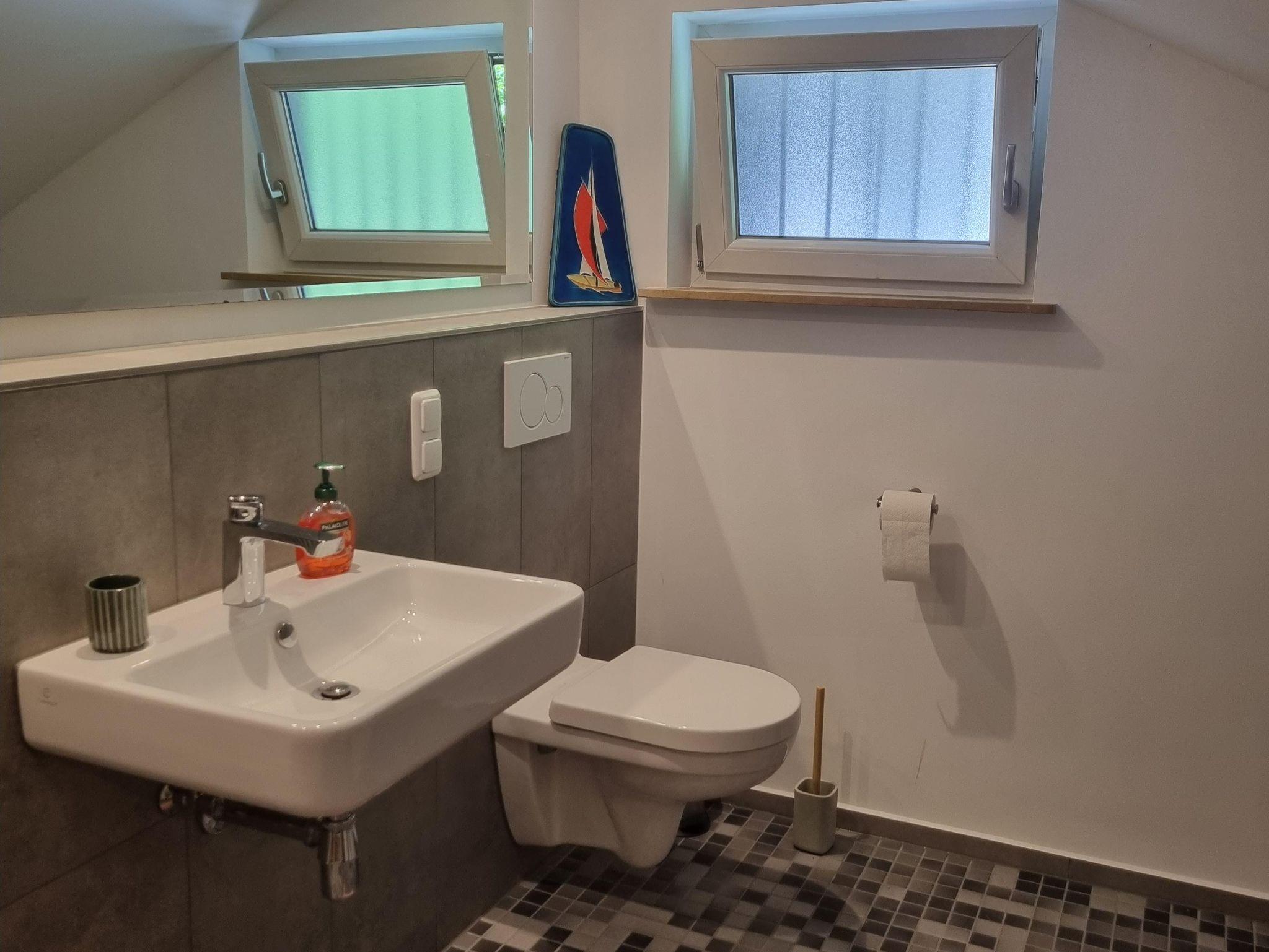 • Bad mit Fußbodenheizung und Regendusche, Waschmaschine und Trockner