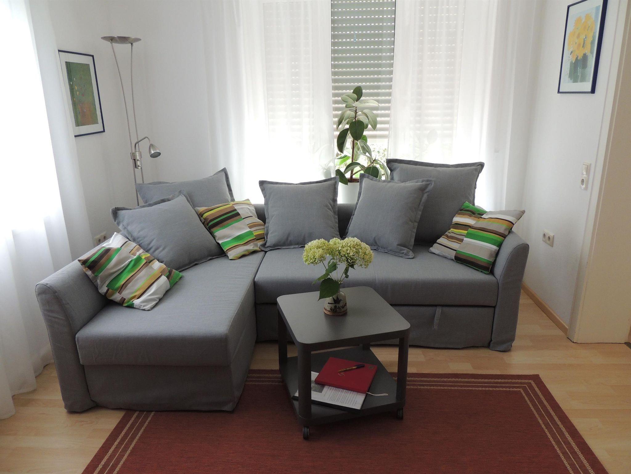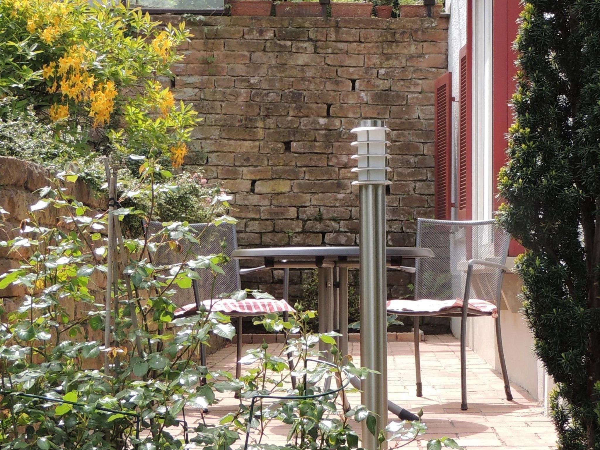 Ferienwohnung in sehr ruhiger Hanglage mit Blick auf die Altstadt, die Rheinebene und die umgebenden Berge Unsere Ferienwohnung (49 qm für 2 - 3 Personen) ist im Erdgeschoss unseres Wohnhauses. Dazu gehören ein Schlafzimmer, ein Wohnzimmer mit ausziehbarem Schlafsofa, Küche, Bad, Diele und eine separate Toilette. Die Wohnung hat einen separaten Eingang und liegt in einer sehr ruhigen Sackstraße, ca. 150 m oberhalb der Altstadt.
