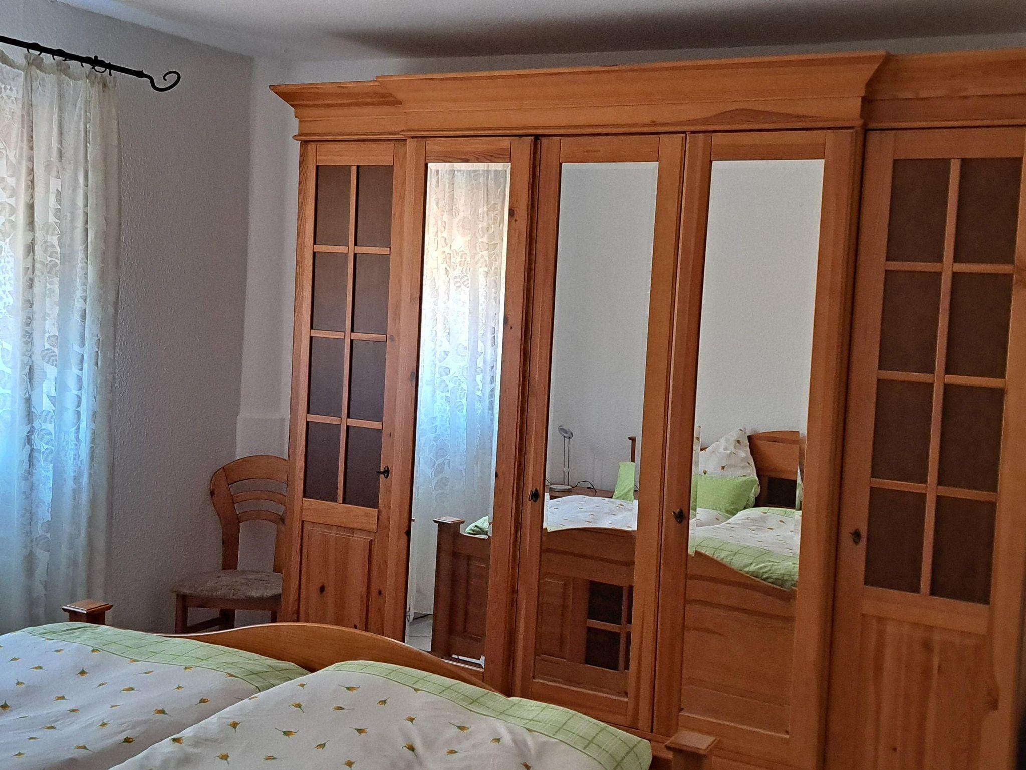 Die Ferienwohnung ist 75qm groß, besteht aus 1 Schlafzimmer mit Doppelbett und großem Kleiderschrank, 1 großem Wohnzimmer mit Schlafcouch für 2 zusätzliche Personen und einer gemütlichen, großen Sitzcouch und Kabel-TV. Die voll eingerichtete Wohnküche mit Essecke läßt keine Wünsche offen. Das Bad ist mit einer Dusche und WC, sowie Waschbecken mit Spiegelschrank ausgestattet. Handtücher und Föhn sind selbstverständlich.