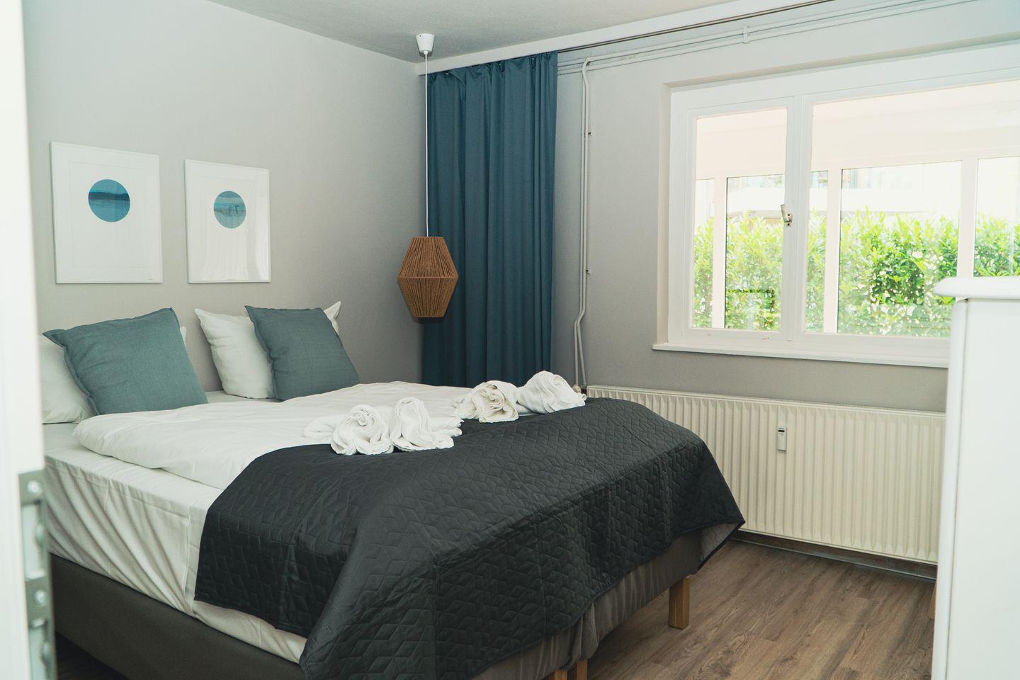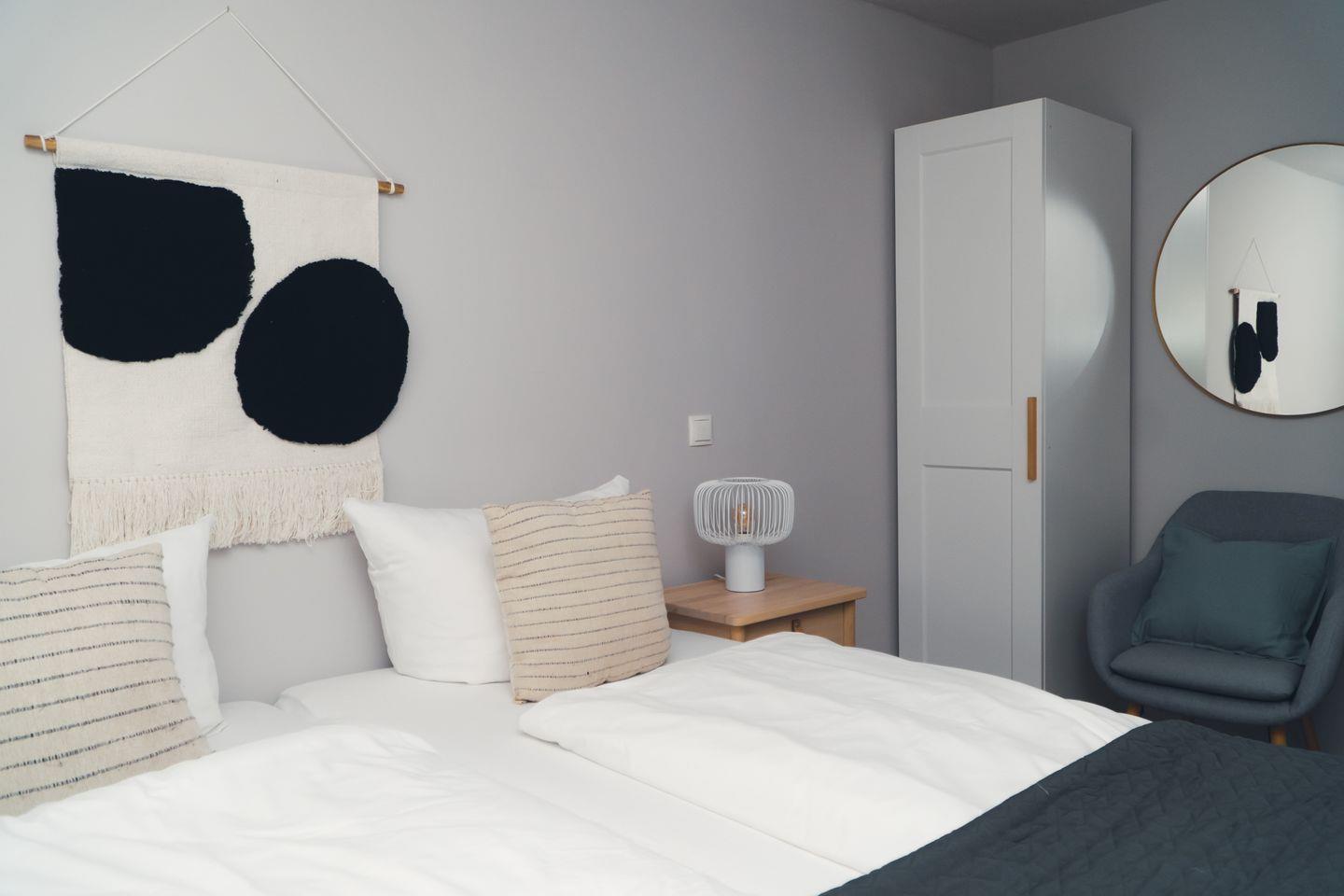 Dieses geräumige Apartment befindet sich im Erdgeschoss und hat einen Größe von 70 m². Es ist ideal für Familien oder deine Workation und bietet auf zwei Schlafzimmern und einem großen Wohn- und Essbereich viel Platz zum Entspannen und Beisammensein. Die stilvoll eingerichteten Räume vereinen modernen Komfort mit liebevoll restaurierten Möbeln, die dem Apartment seinen ganz eigenen Charme verleihen. Der Wohnbereich lädt mit seiner gemütlichen Sitzecke und dem großen Esstisch zu gemeinsamen Abenden oder entspannten Stunden ein, während du durch die Fenster den Blick in die Natur genießt.