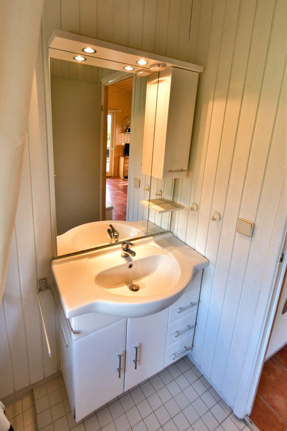 Über die Eingangsterrasse kommen Sie über die voll bestückte kleine Küche in den großen Wohnraum mit Essecke und gemütlichem Ecksofa samt SAT-TV. Die schöne Südterrasse mit Sitzgelegenheiten lädt zum entspannten Verweilen in der Natur ein. Die 50 m² Wohnfläche mit einem Schlafzimmer mit Doppelbett und einem weiteren Schlafzimmer mit Etagenbett bieten Platz für vier Personen und zusätzlich für bis zu zwei Kleinkinder bis 2 Jahren. Aus dem Wohnraum kommen Sie über einen kleinen Flur in das Bad mit Waschplatz, Dusche und WC. Außerdem gehört ein Pkw-Stellplatz selbstverständlich zu jedem Ferienhaus und Sie können den Internetzugang per WLAN kostenfrei nutzen.
