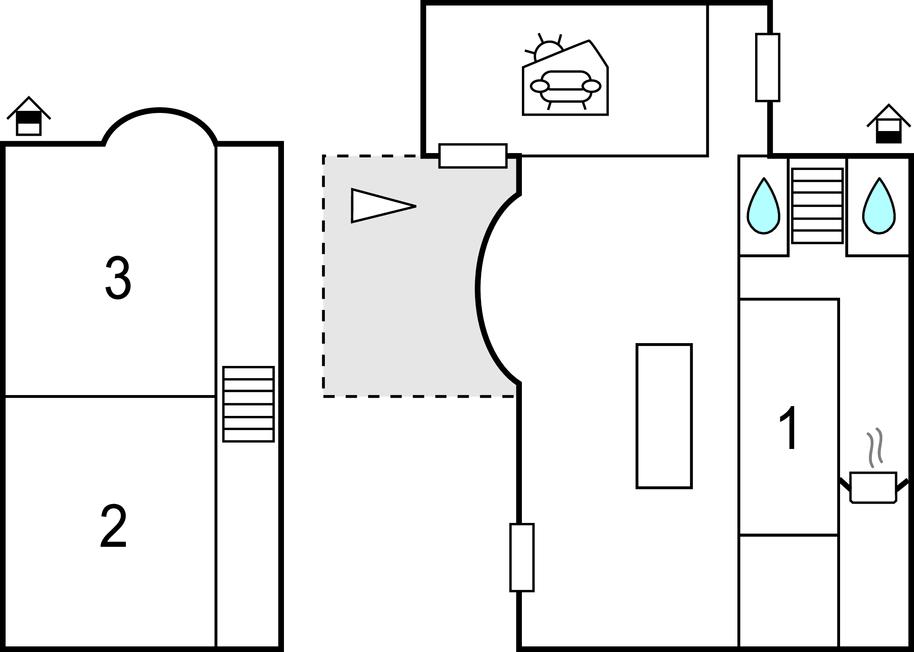 Badeværelse 7m2 (nr. 1) - WC. Varmt og koldt vand. Bruser og badekar