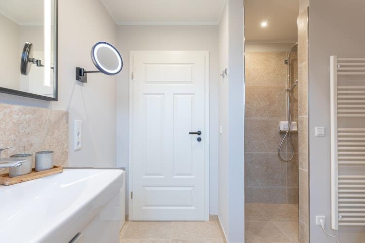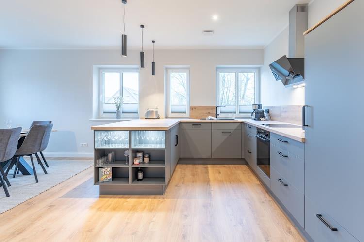 Dette nybyggede feriehus kan rumme op til fem personer. Dobbelthuset er moderne og eksklusivt møbleret og byder på alt hvad du behøver til dit ophold. Den rummelige opholdsstue indbyder til hyggelige tv-timer med en skøn sofagruppe (sovesofa). Det åbne køkken er meget veludstyret: opvaskemaskine, køleskab, fryser, ovn, induktionskomfur, emhætte, vinkøleskab, Nespresso-maskine, filterkaffemaskine (filterstørrelse 4), elkedel og brødrister. Ydermere er din firbenede ven meget velkommen. Haven er omgivet af et lærkehegn af høj kvalitet og en lingushæk. Indkvarteringen tilbyder også opladningsmuligheder (mod betaling) og parkering til dine elcykler og/eller elbiler. Naboejendom: DE-25899-56 Højdepunkter: WiFi (fiberoptisk), sauna, vaskeripakke & slutrengøring Det nye hus (byggeår 2022/23) ligger i et roligt villakvarter i udkanten af Niebüll og kun få minutters gang fra marker og enge. Deezbüll's Biikeplatz, elsket af lokalbefolkningen, ligger i nærheden. Feriehuset byder på et ideelt udgangspunkt for cykelture, fuglekiggeri, ture til øerne Sild, Föhr og Amrum, til Danmark og meget mere. Du finder en bred vifte af shoppingmuligheder i centrum af Niebüll.