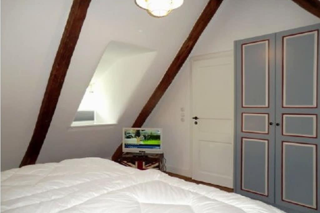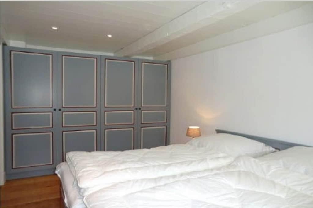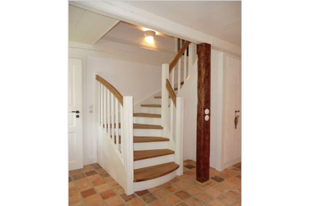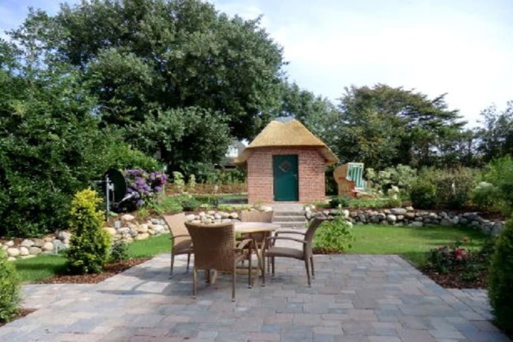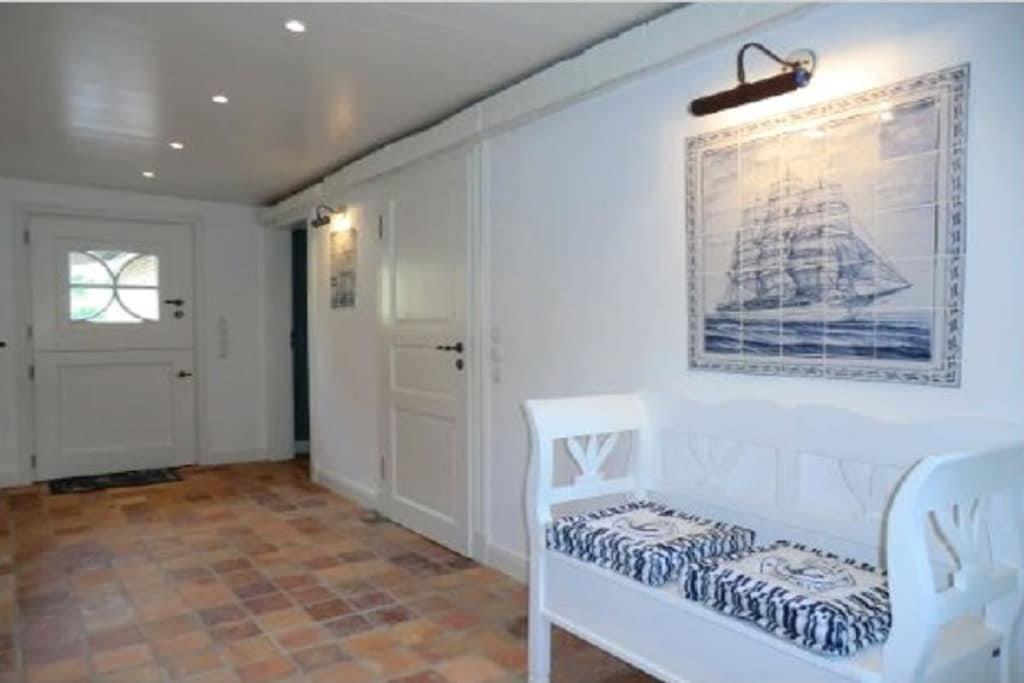 I det rolige Nieblum-kvarter i Goting kan dette eksklusive dobbelthus prale af et stråtag og en stor, privat have og terrasse (med sauna). Det kærligt og smagfuldt indrettede dobbelthus (til venstre) tilbyder cirka 100 m² boligareal til to til fire personer (kun ikke-rygere) og giver rigelig plads til en afslappende ferie. Gratis Wi-Fi er tilgængelig. Der er privat vaskemaskine og tørretumbler. Kæledyr er ikke tilladt. Stueetage: Egen indgang, rummelig gang med trappe, der fører til øverste etage og adgang til den private sydøstvendte have (inklusive strandstol) med sauna (til eget brug), soveværelse med dobbeltseng, brusebad/toilet, rummelig stue og spisestue med åbent køkken, historisk Mylin-kakkelovn, fladskærms-tv, dvd-afspiller osv. Øverste etage: Stue-/læseområde, badeværelse med bruser og badekar/toilet, soveværelse med dobbeltseng (med et ekstra tv).