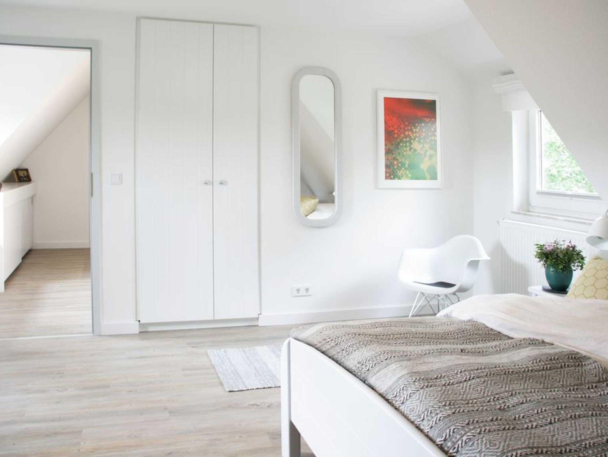 Helle, modern eingerichtete Obergeschoßwohnung in einem Mehrfamilienhaus. Die Unterkunft befindet sich im 1.OG.