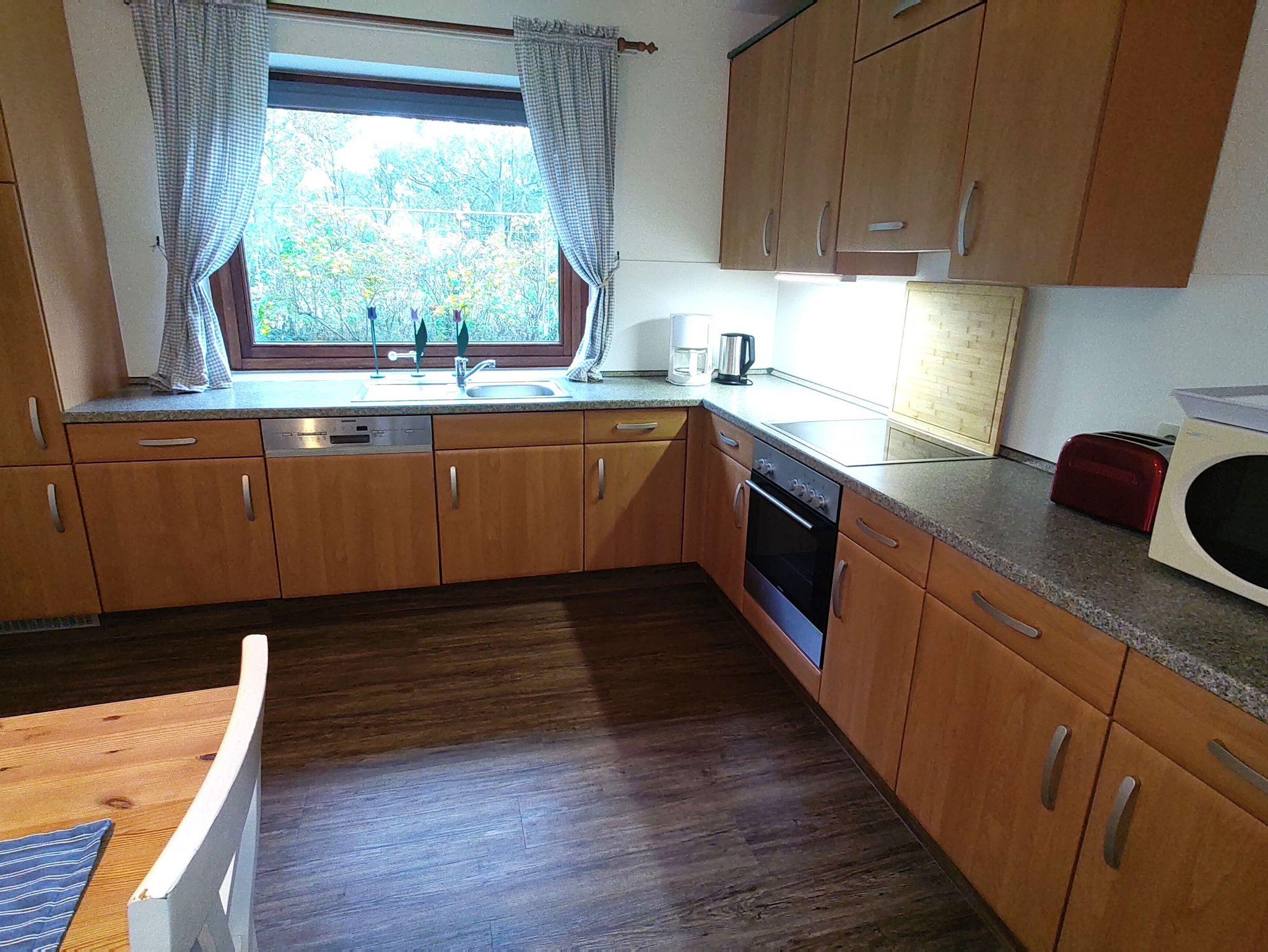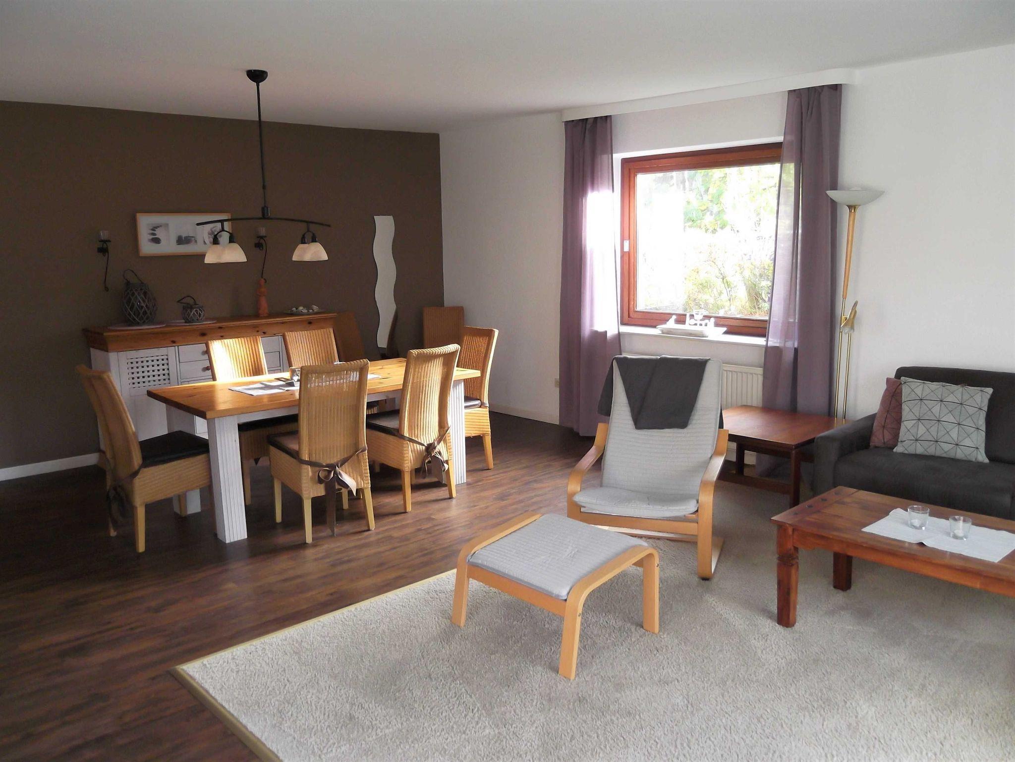 Die großzügige Erdgeschoßwohnung für 2 bis 8 Personen hat einen direkten Zugang zum Garten vom Wohnzimmer aus.