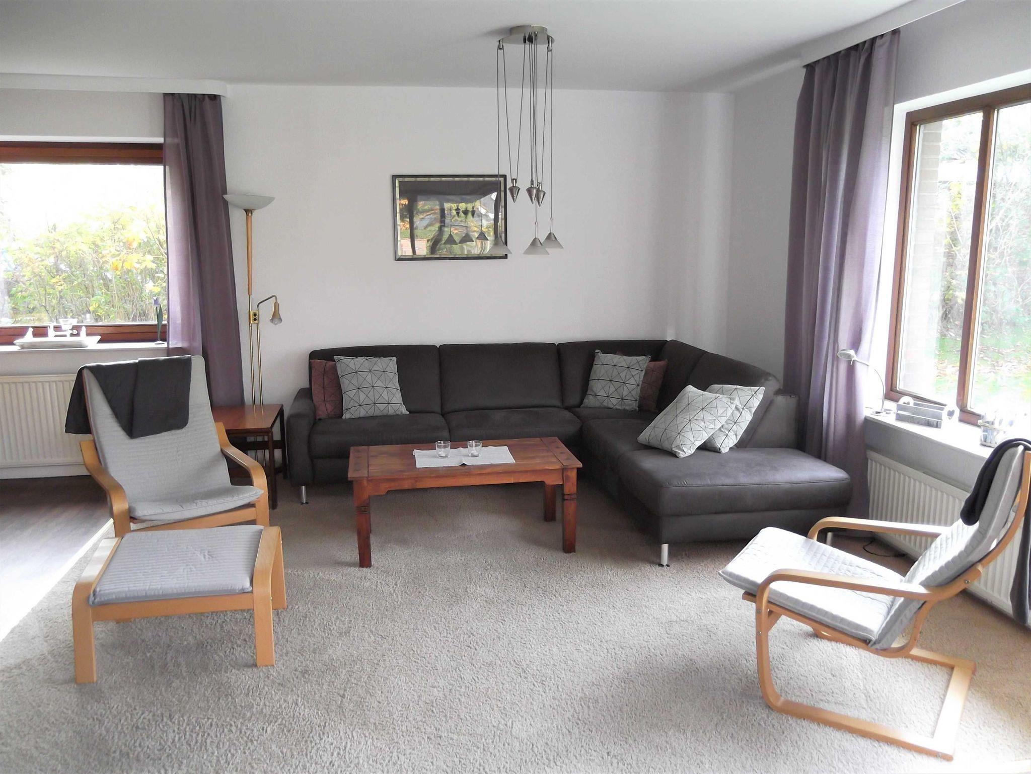 Der großzügige Garten lädt zum Verweilen ein, die Kinder haben viel Platz zum spielen. In den vier Schlafzimmern ist Platz für 2 bis 8 Personen, ein Elternschlafzimmer verfügt dazu über einen Fernseher. Die beiden Kinderschlafzimmer haben jeweils zwei Einzelbetten. Eine separate Küche mit Esstisch und ein großes Wohnzimmer (42 qm) mit einer gemütlichen Sitzecke steht Ihnen zur Verfügung. Vom Wohnzimmer aus erreicht man die großzügige Terrasse, natürlich gehören Gartenmöbel dazu. Beide Duschbäder sind mit einer ebenerdiger Dusche ausgestattet. Vor dem Haus befindet sich ein Stellplatz für Ihren PKW.