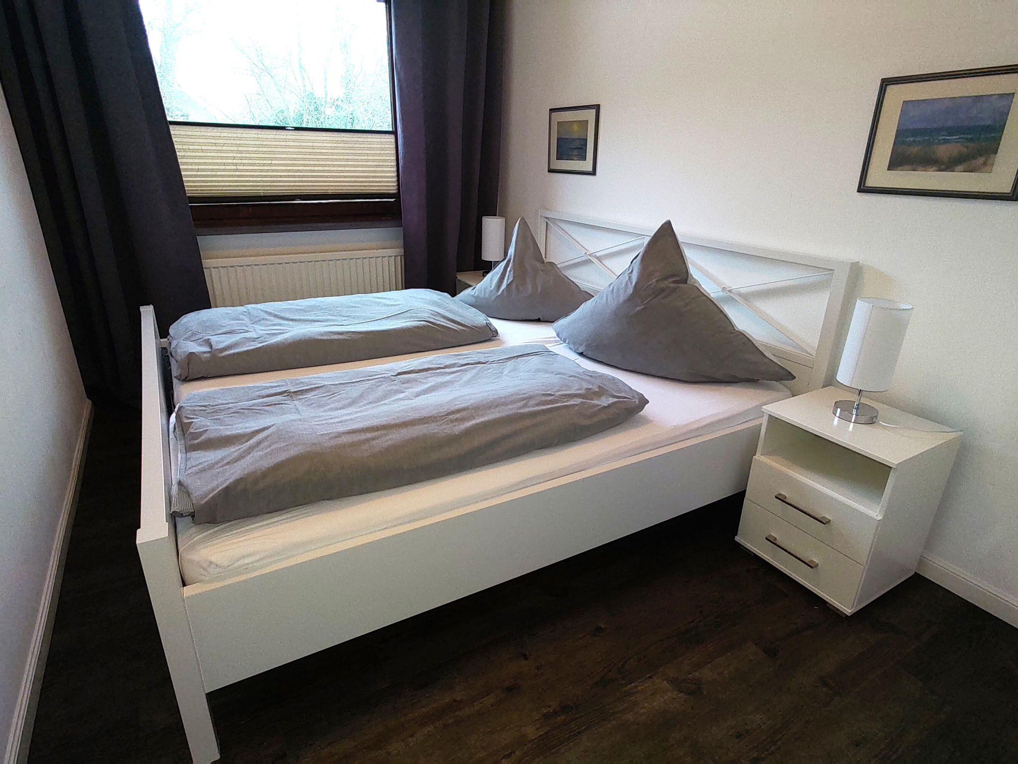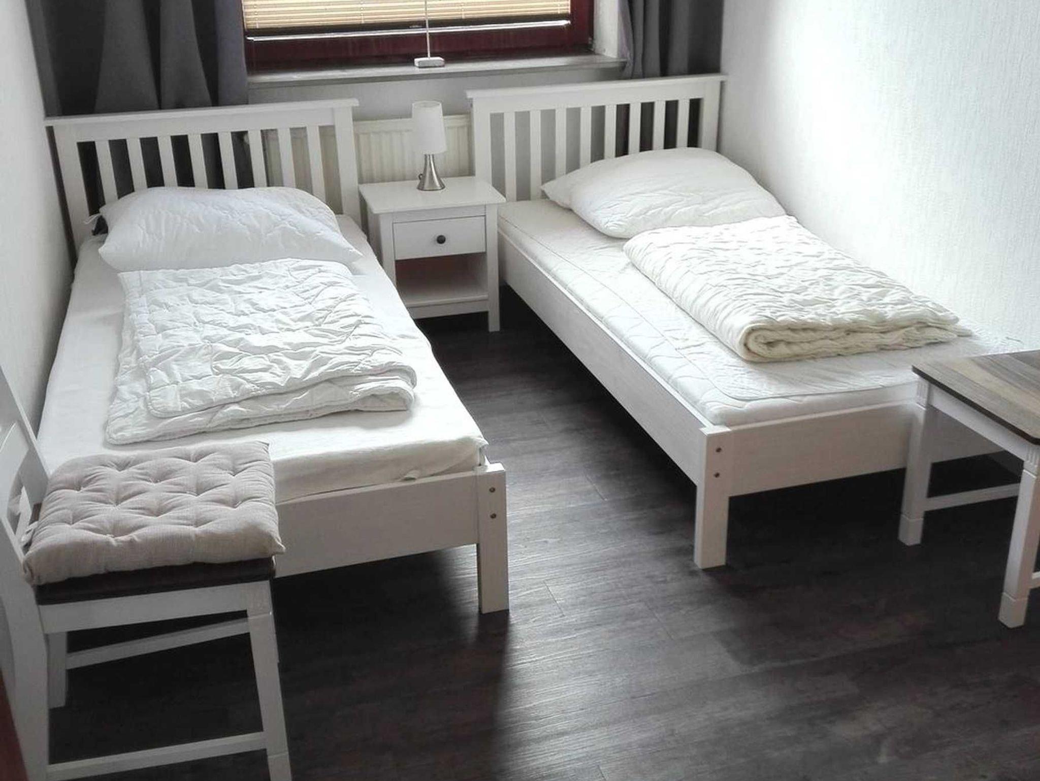 2 Schlafräume mit je einem Doppelbett, 2 Schlazimmer mit je zwei Einzelbetten, 1 großer Wohnraum, 1 separate Küche, 2 Badezimmer mit Dusche.
