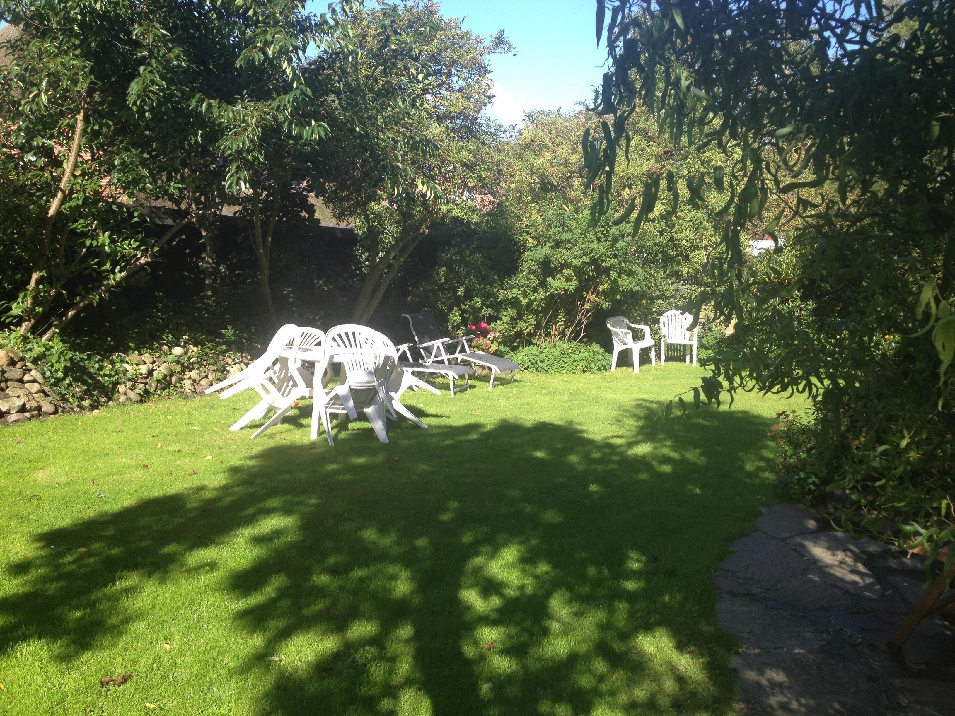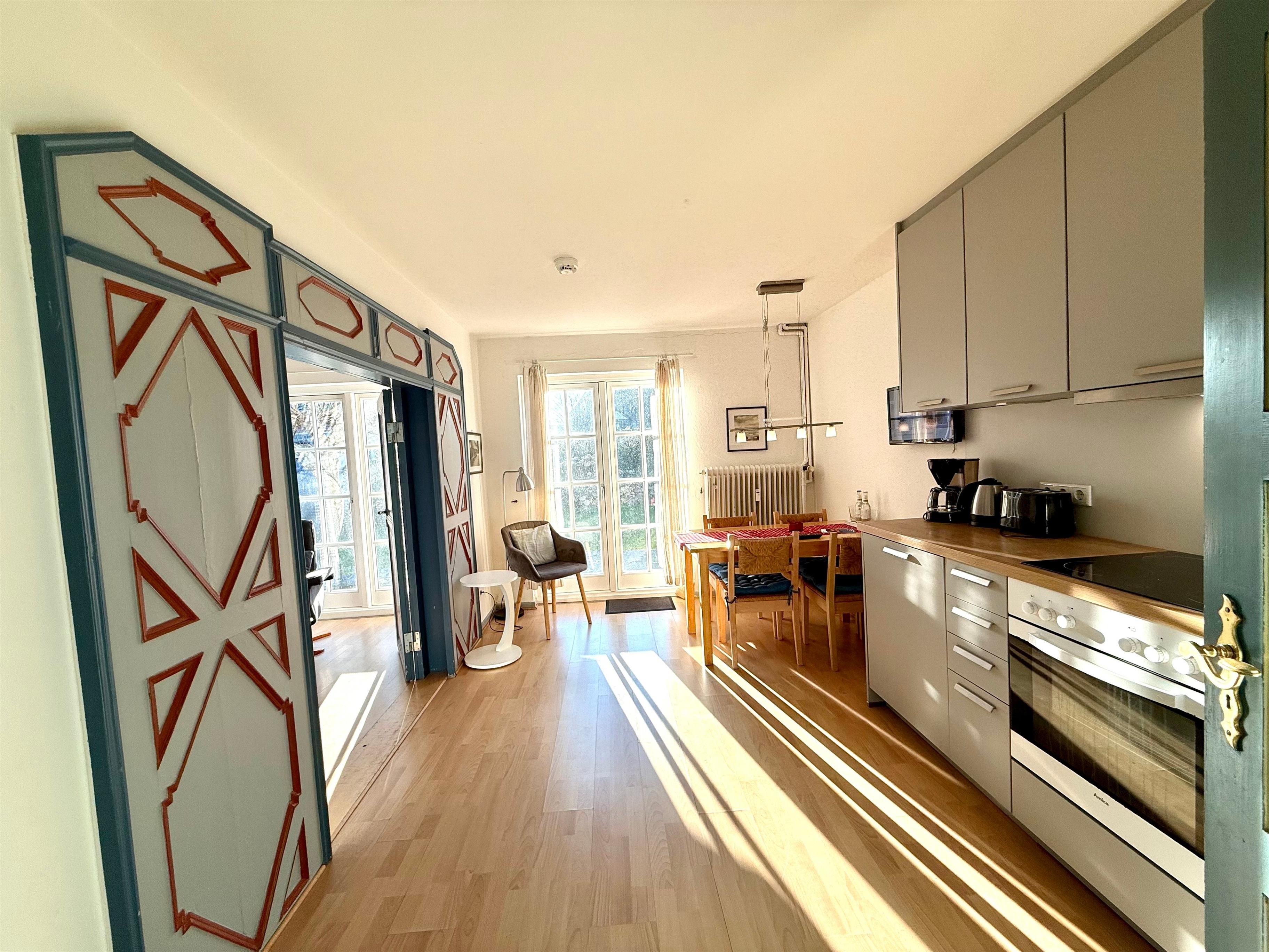 Im Wohn/Esszimmer wird der direkte Zugang zur West-Terrasse, mit dem sich anschliessenden grossen Garten, von den Gästen besonders geschätzt.