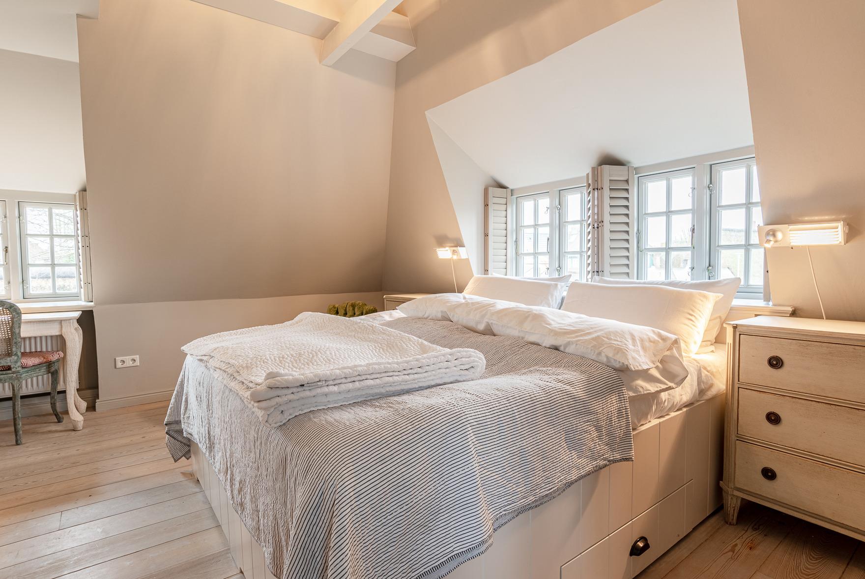 Im nach wie vor familiär geführten Haus befinden sich zwei Ferienwohnungen, SÖNNES STUUV und BETTYS STUUV. Beide sind ausgesprochen stilvoll eingerichtet und mit hochwertigen Materialien ausgestattet, mit allem, was einen wunschlos glücklich machenden Aufenthalt ermöglicht. Es ist durchweg gelungen, den harmonischen Charakter des reetgedeckten Hauses zu erhalten - vom ersten Augenblick an fühlt man sich zu Hause.