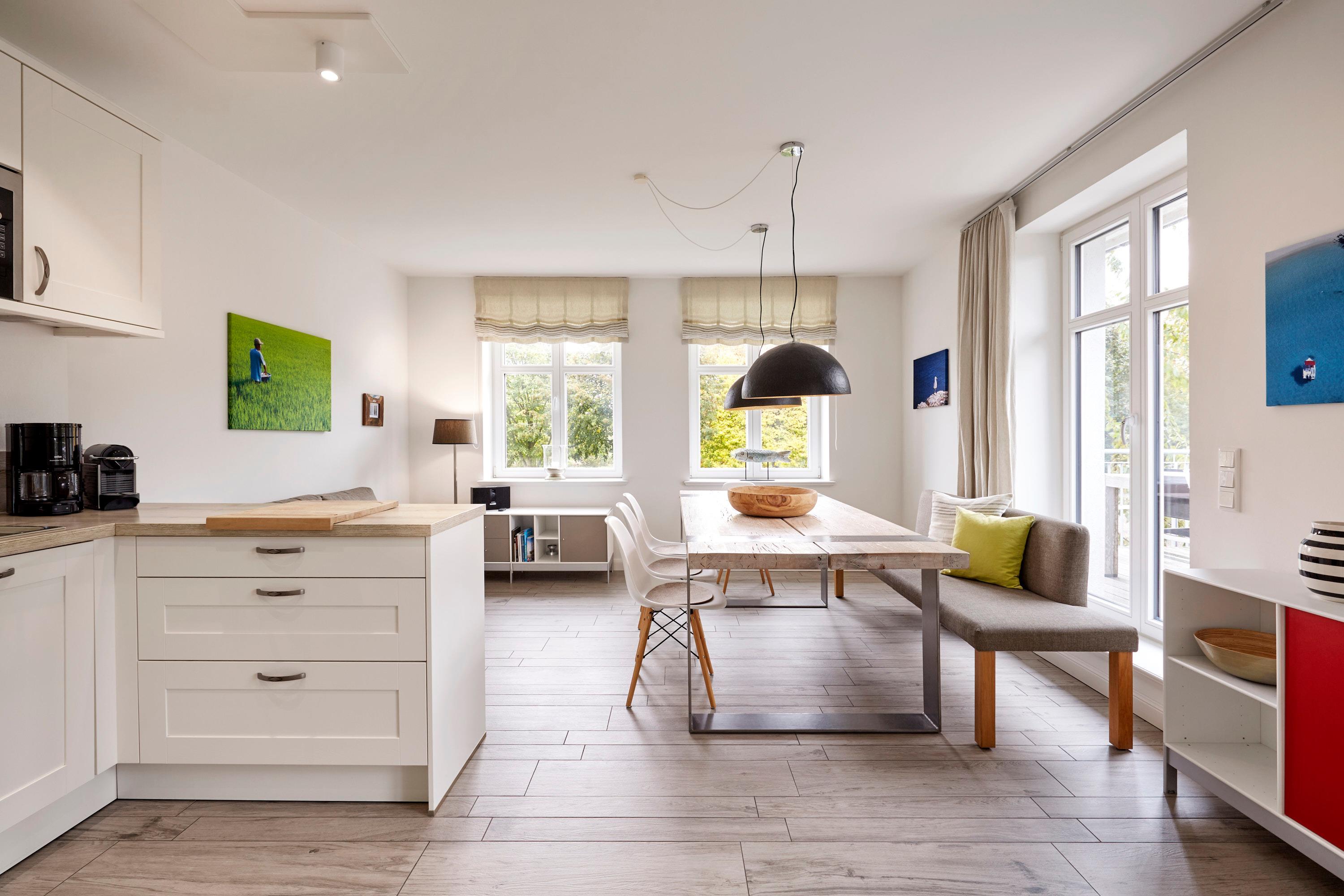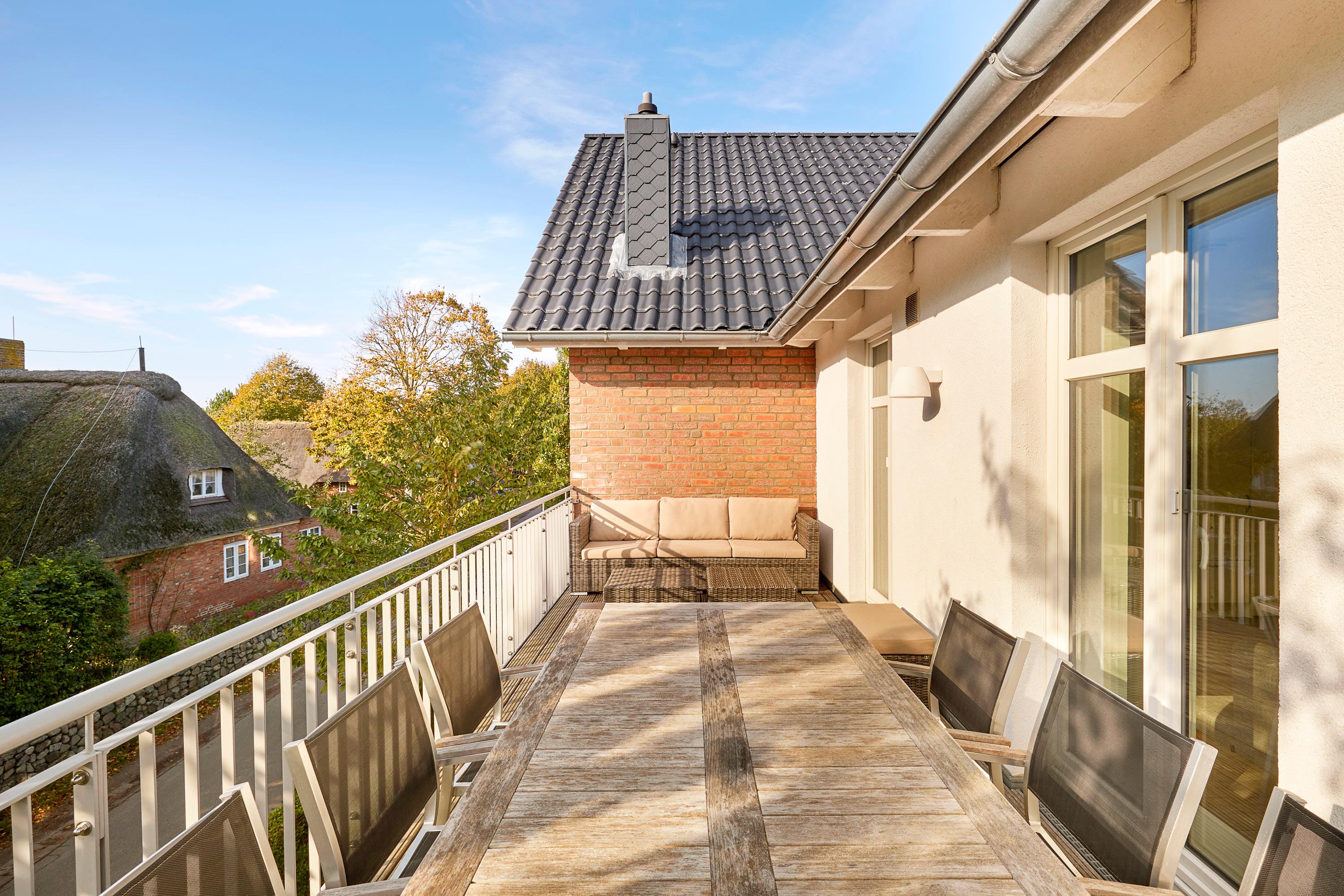 Das Objekt Villa de Meere - mit 8 individuellen und exklusiven Wohnungen - befindet sich in einer ruhigen Seitenstraße nahe dem Nieblumer Ortskern. Die Wohnung Villa de Meere 5 zeichnet sich durch eine große Dachterrasse mit gemütlichen Loungemöbeln aus. Die Terrasse wird sicherlich Ihr Lieblingsplatz. Hier fängt der Tag mit einem ausgiebigen Frühstück an, und am Abend genießen Sie Ihr Glas Wein mit Blick auf die Grünanlage und den Dorfteich De Meere. Die Küche mit dem wunderbar großen Essplatz ist das Herzstück der Wohnung. Hier können Sie kochen, klönen und den Urlaubstag planen. Wenn es Zeit zur Entspannung ist, bieten Ihnen die gut geschnittenen Schlafräume viel Platz. Nieblum selbst, das wohl schönste Inseldorf, ist geprägt von reetgedeckten alten Kapitänshäusern, wunderschönen Bauerngärten und dem Friesendom St. Johannis. Der Nieblumer Strand liegt nicht weit vom Ortskern entfernt. Cafés, Restaurants sowie ein Bäcker und Einkaufsmöglichkeiten für den täglichen Bedarf sind im Ort vorhanden und bequem zu Fuß zu erreichen.