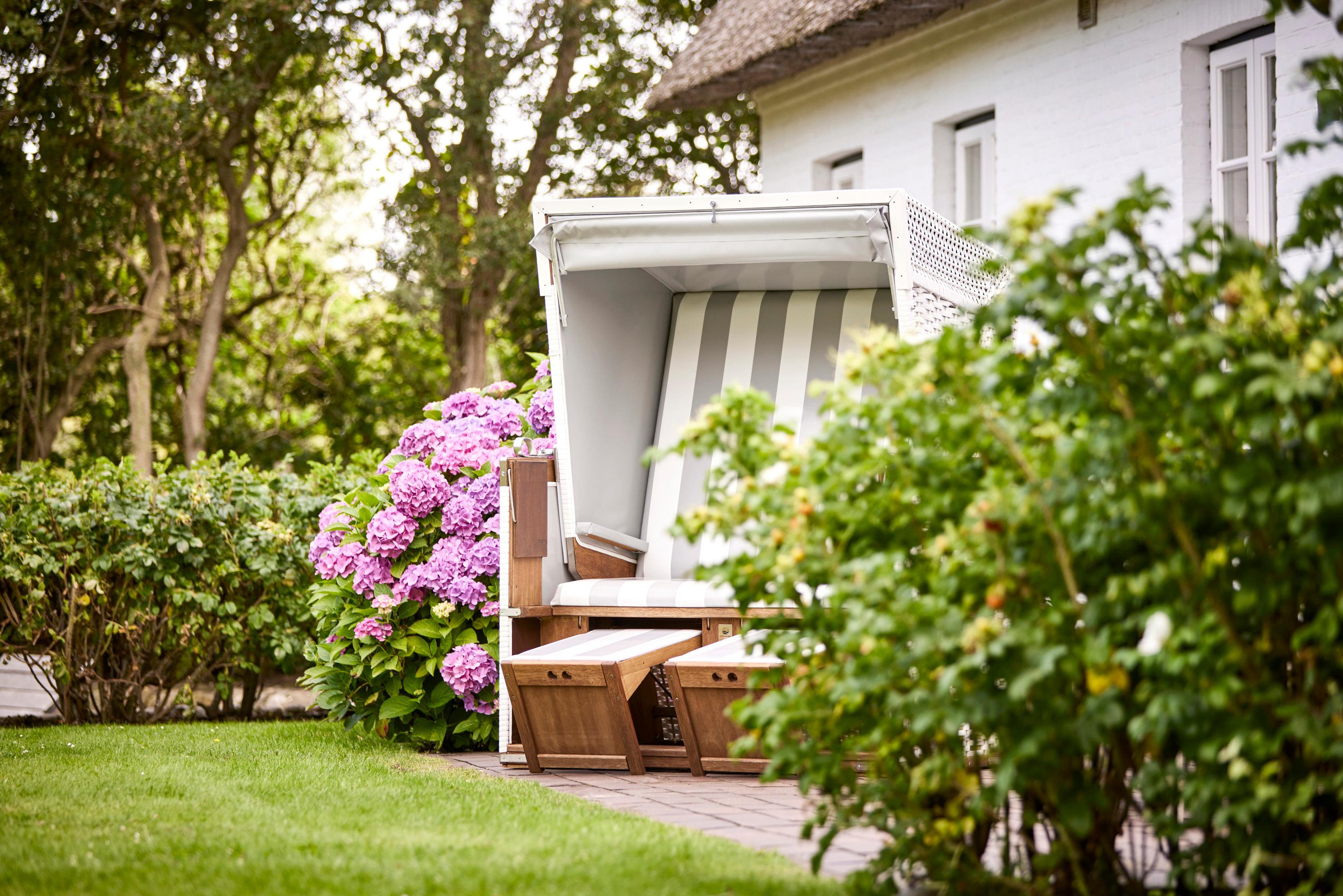Über eine kleine private Stichstraße erreichen Sie dieses wunderschöne Reetdachhaus im idyllischen Inseldorf Nieblum, das auf einem ca. 1.500 m2 großen, weitläufigen und sonnigen Grundstück steht. Das Haus bietet einen grossen, eingewachsenen Garten mit umlaufender Frühstücks-und Sonnenterrasse. Zum Entspannen stehen dort auch zwei Strandkörbe. Der wundervoll angelegte Garten dieser ehemals historischen Anlage bietet durch Friesenwälle und eine Sonnenkuhle maximale Privatsphäre. Eine stimmungsvolle abendliche Illumination komplettiert dieses außergewöhnliche Ambiente. Ausserdem haben Sie zwei PKW-Parkplätze direkt auf dem Grundstück.