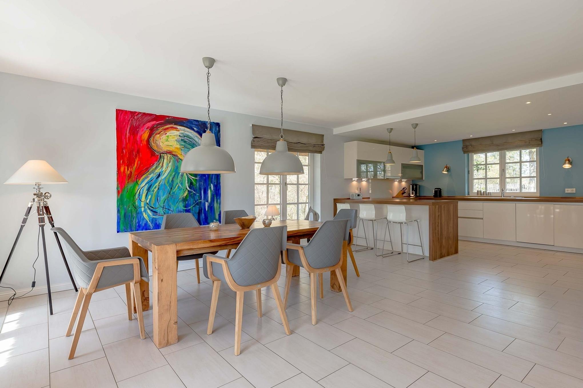 Unser Landhaus Bredland teilt sich in zwei separate Haushälften - Ost und West. Das eingewachsene Grundstück und die ruhige Lage machen Ihren Urlaub zum Wellnessprogramm. Helle Wohnräume, moderne Bäder, ausgewählte, warme Farben und große Fensterflächen kennzeichnen den Stil des Hauses. Genießen Sie die kühlen Abende am Kachelofen oder entspannen Sie in der großen Sauna mit angrenzendem Relaxbereich und sichtgeschützter Bangkirai-Terrasse. Für die Sommermonate lädt der Garten zum Erholen ein. Mit einem kurzen Spaziergang gelangen Sie zum Strand - die Nordsee liegt fast der Tür. Auch der Golfplatz ist in kurzer Zeit zu erreichen. Seien Sie unser Gast und verbringen unvergessliche Urlaubstage im Landhaus Bredland!
