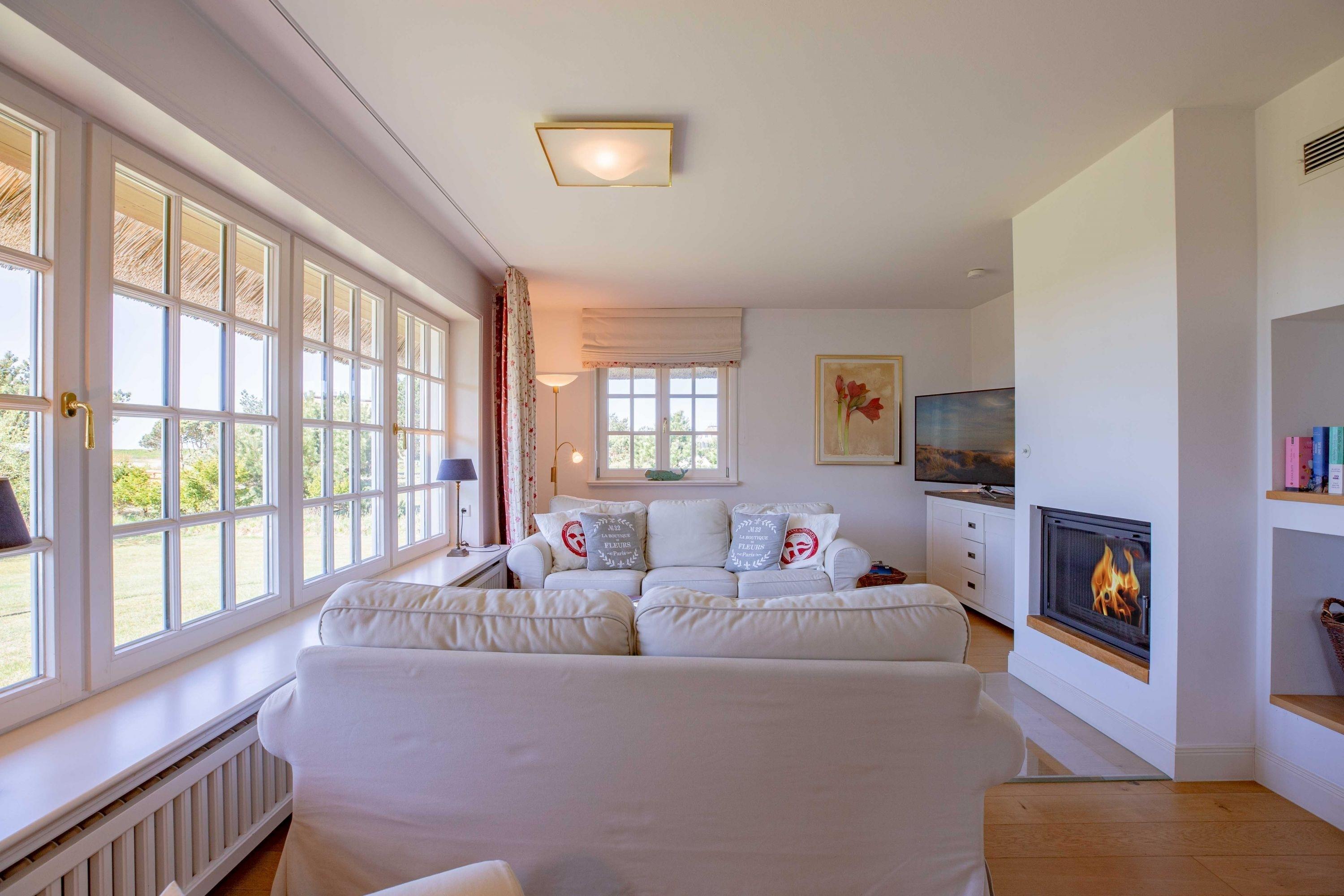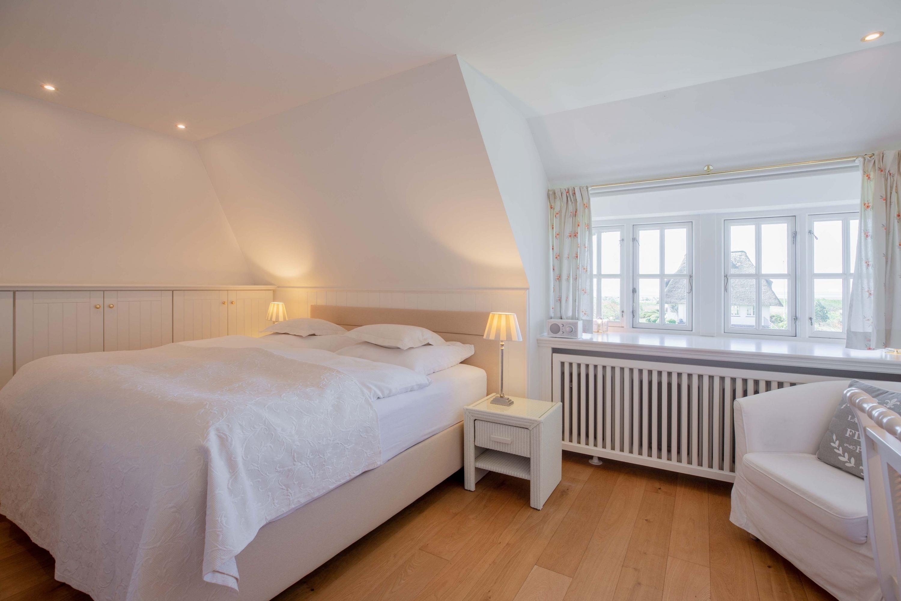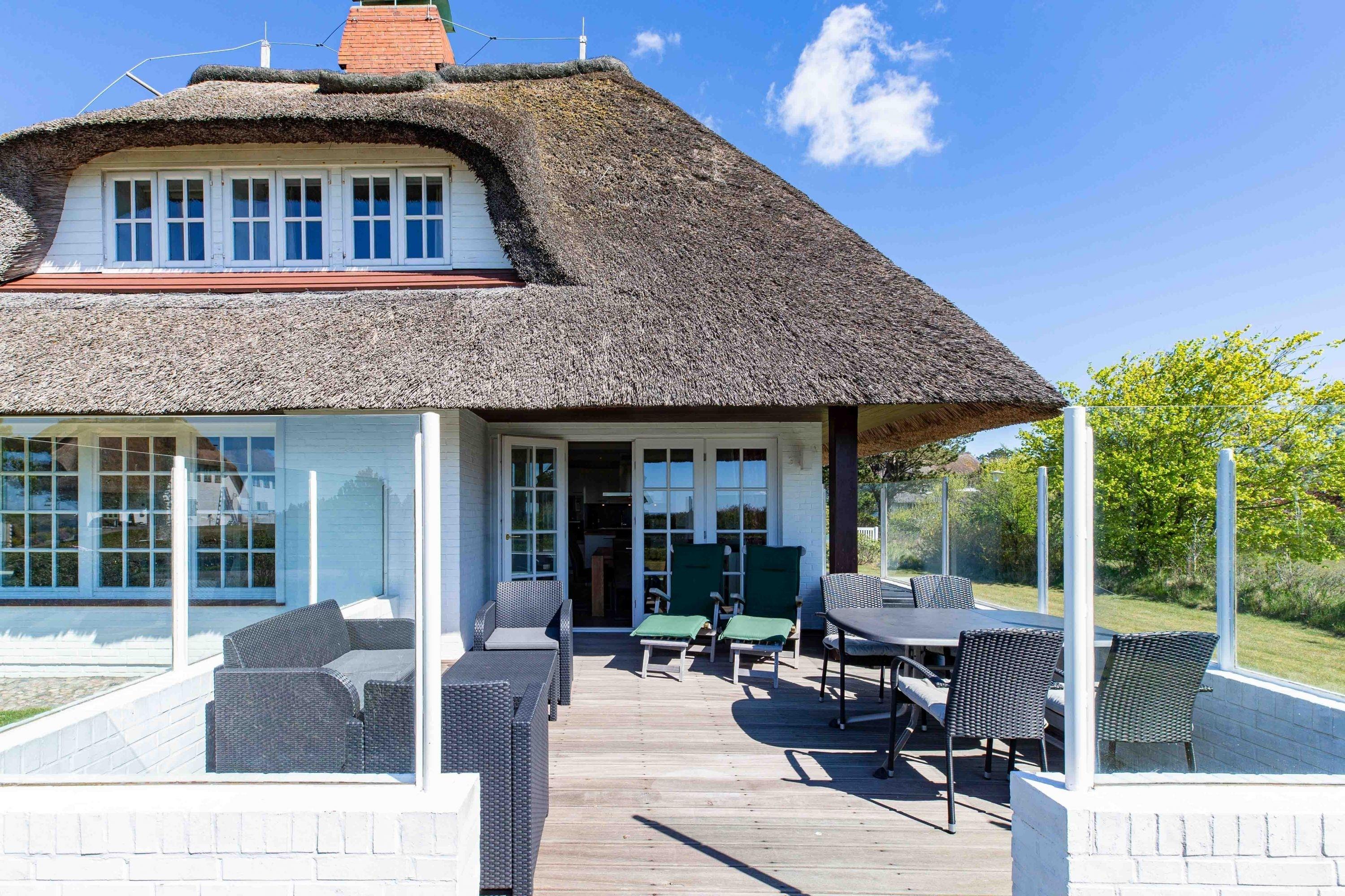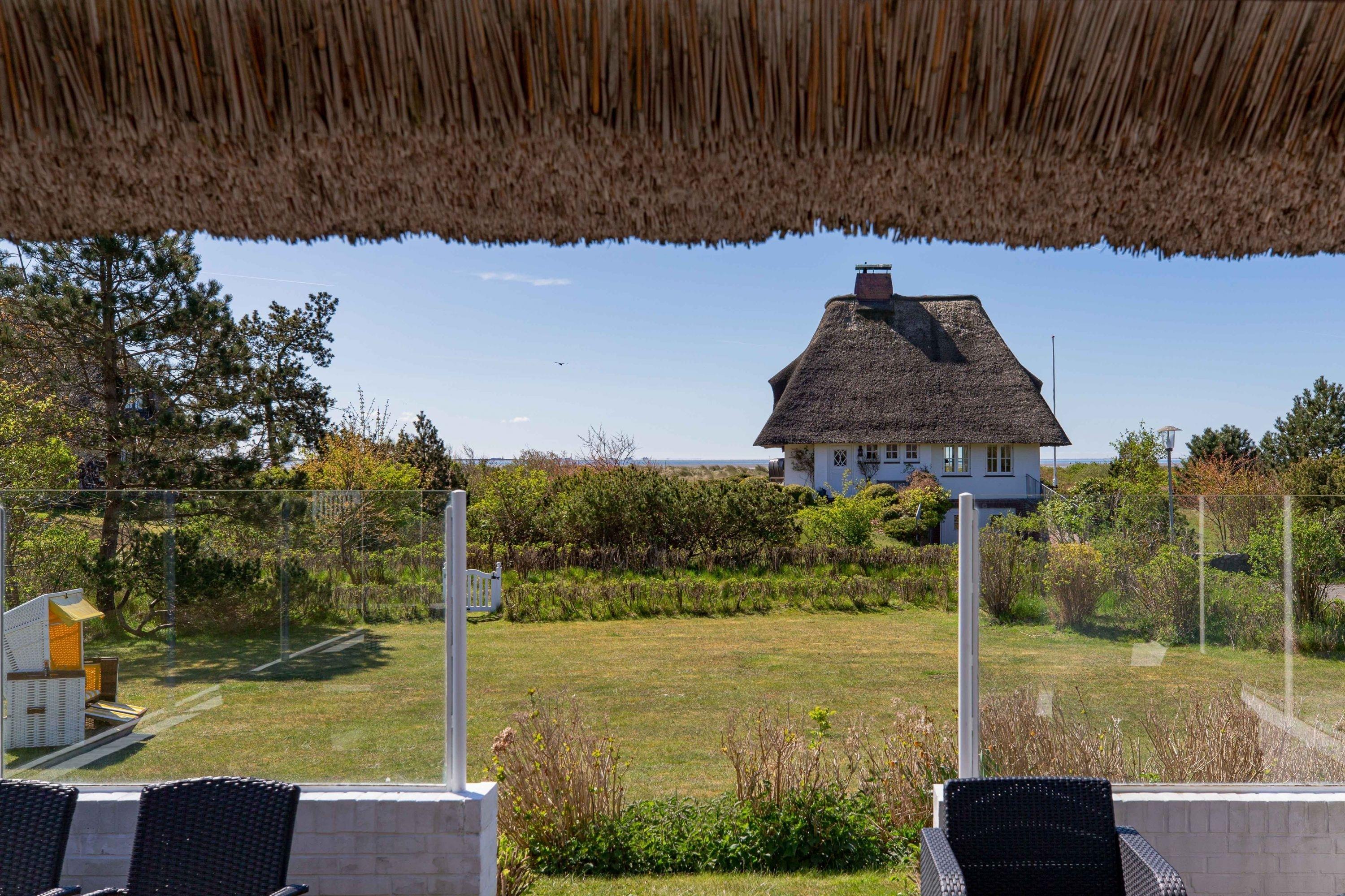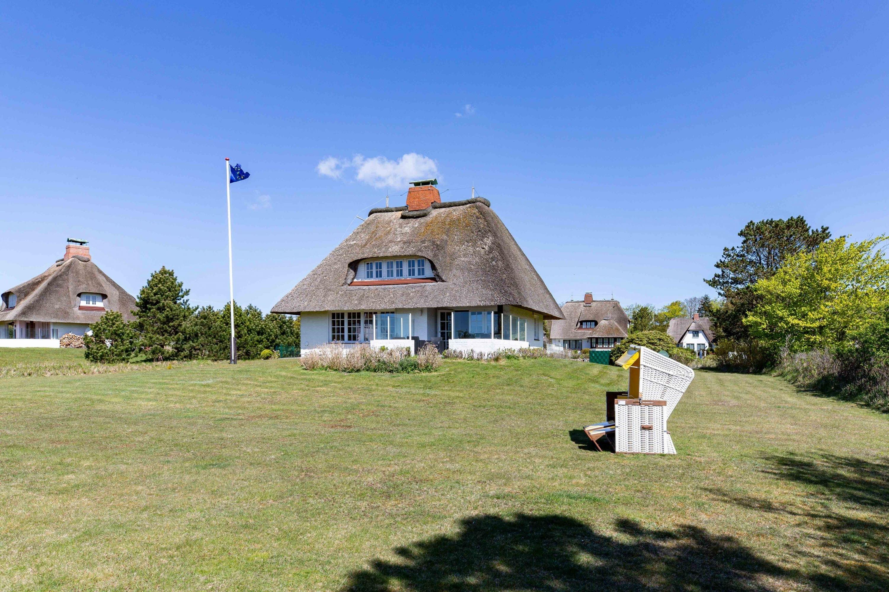 Herzlich willkommen in unserem Haus am Wasser. Das Einzelhaus steht in absoluter Spitzenlage zwischen Nieblum und Wyk in unmittelbarer Nähe zum Meer und nur wenige Schritte vom schönsten Golfplatz Schleswig Holsteins entfernt. Der exklusive Ortsteil Greveling besteht aus wenigen Einzelhäusern unter Reet, die fast alle auf eigenen kleinen Warften in exponierter Lage direkt an der Nordsee liegen. Hier wohnen Sie einzigartig auf Föhr. Genießen Sie den hohen Komfort und die Großzügigkeit der lichtdurchfluteten Räume in Ihrem Reethaus. Die geschmackvolle Einrichtung begeistert, und der herrliche, zur Nordsee liegende Garten mit großer Terrasse und freiem Meerblick verleitet zum Träumen.