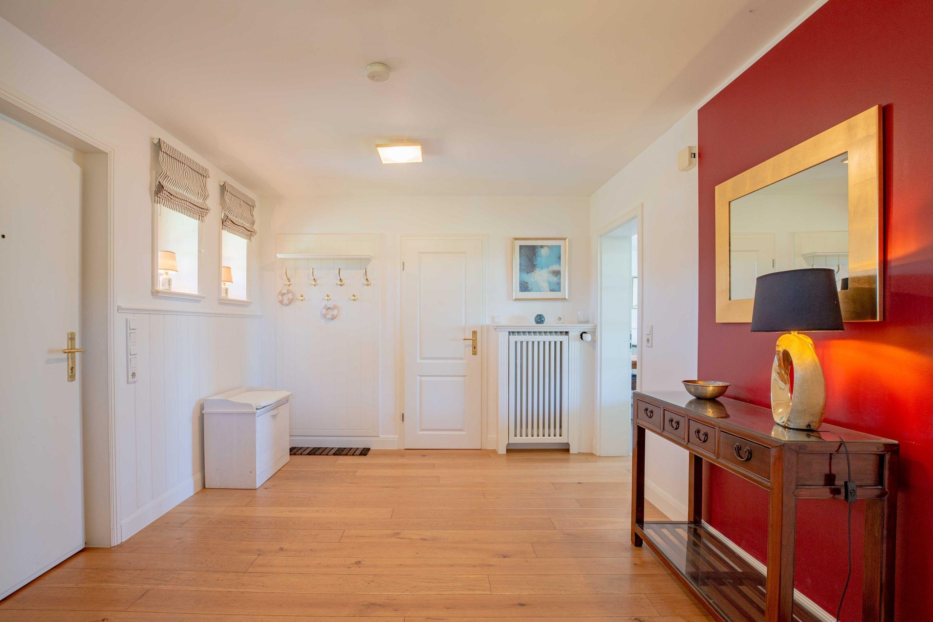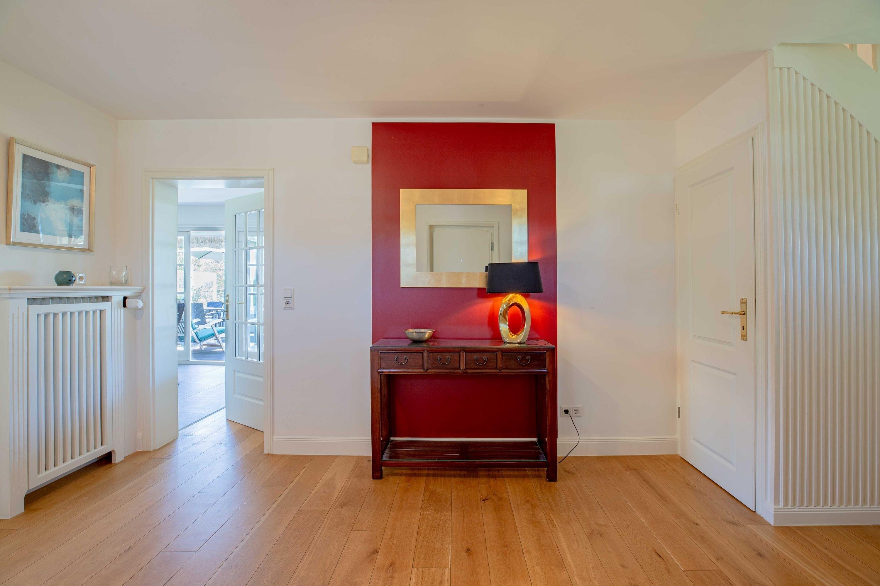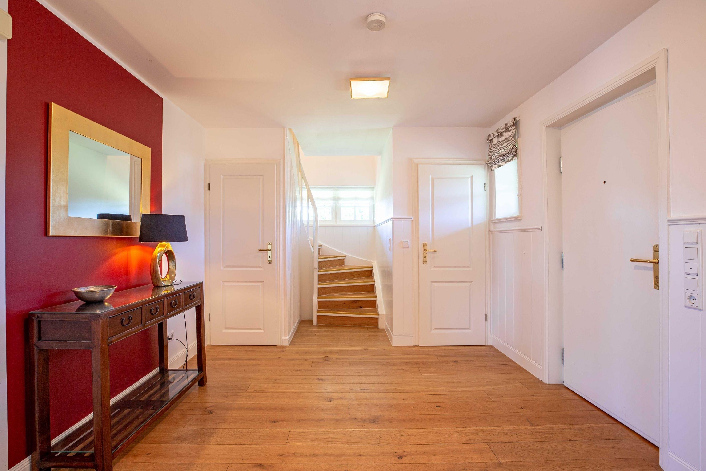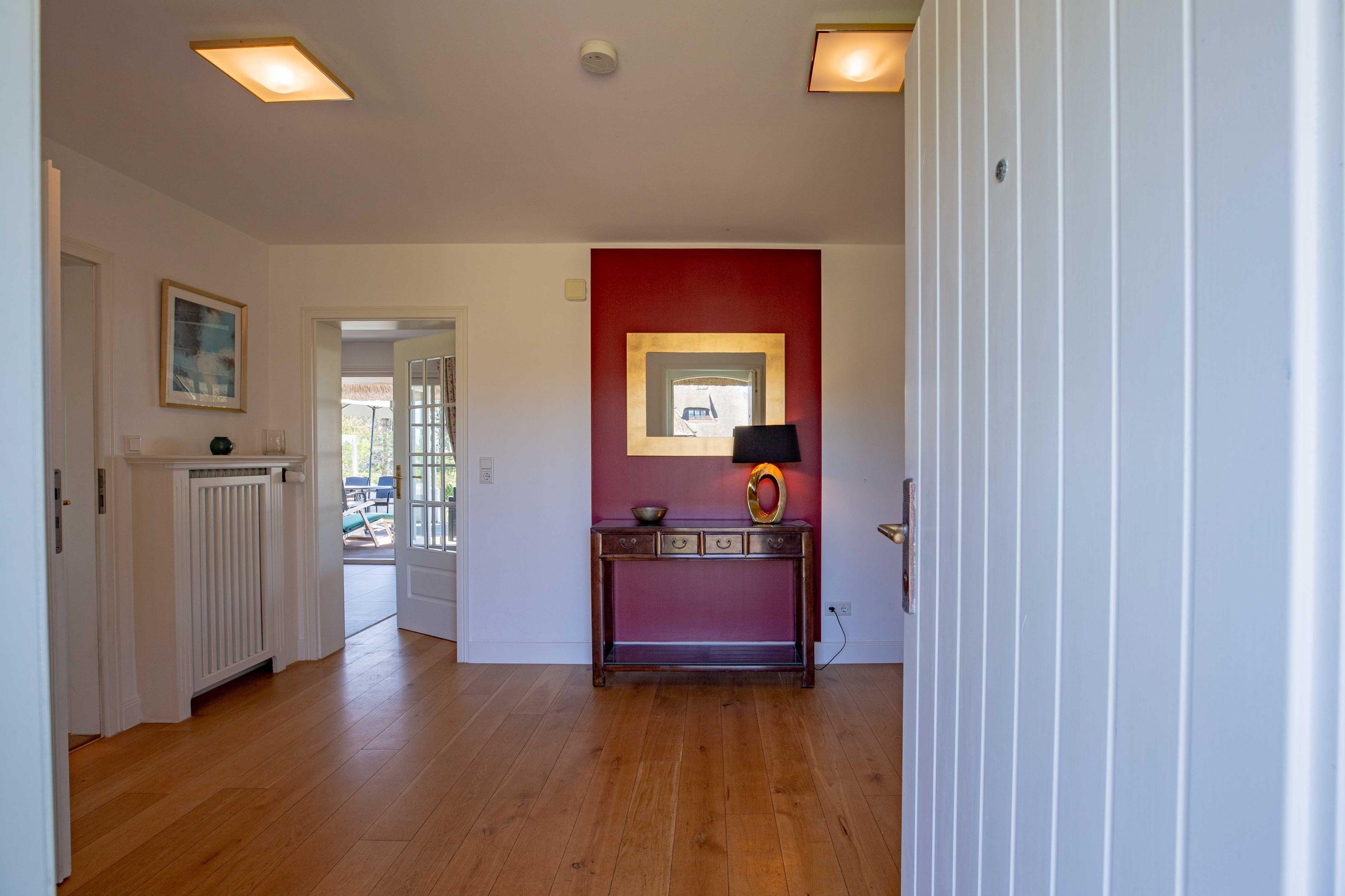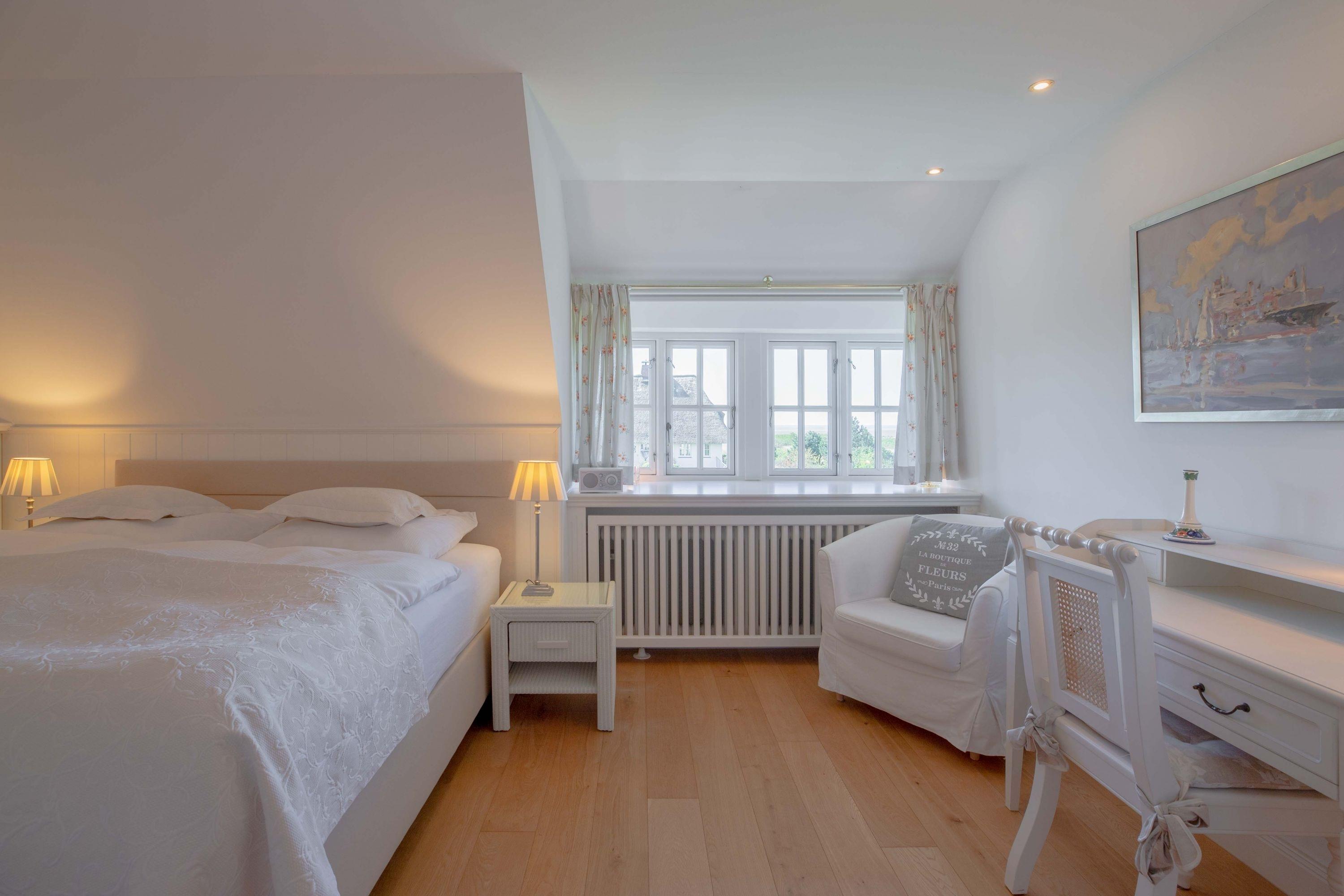 Herzlich willkommen in unserem Haus am Wasser. Das Einzelhaus steht in absoluter Spitzenlage zwischen Nieblum und Wyk in unmittelbarer Nähe zum Meer und nur wenige Schritte vom schönsten Golfplatz Schleswig Holsteins entfernt. Der exklusive Ortsteil Greveling besteht aus wenigen Einzelhäusern unter Reet, die fast alle auf eigenen kleinen Warften in exponierter Lage direkt an der Nordsee liegen. Hier wohnen Sie einzigartig auf Föhr. Genießen Sie den hohen Komfort und die Großzügigkeit der lichtdurchfluteten Räume in Ihrem Reethaus. Die geschmackvolle Einrichtung begeistert, und der herrliche, zur Nordsee liegende Garten mit großer Terrasse und freiem Meerblick verleitet zum Träumen.