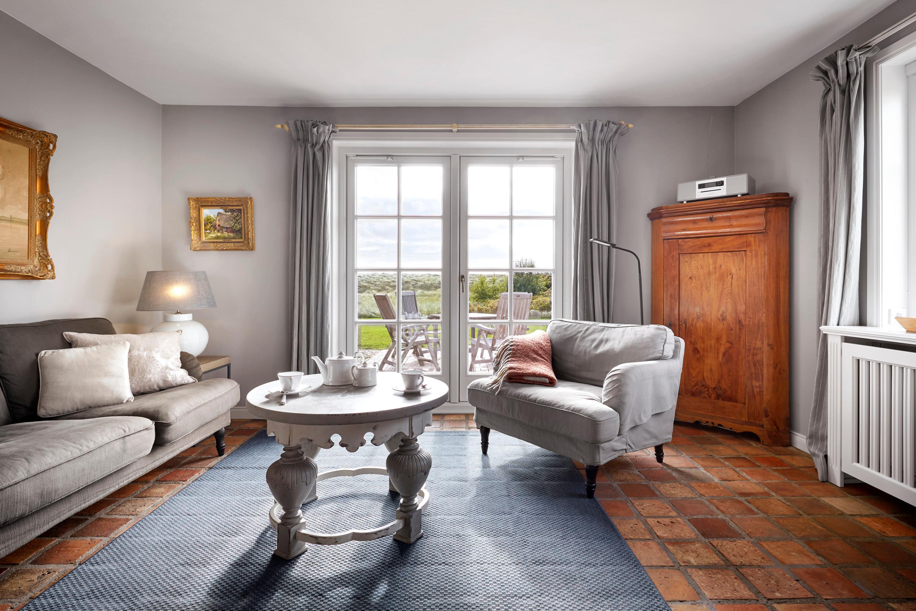 Die Terrassen liegen direkt hinter der Düne und sind gut voneinander getrennt. Im Strandkorb können Sie schon die ersten Sonnenstrahlen im Frühling genießen. Vom Haus haben Sie einen direkten Zugang zum Strand. Das Haus selber ist im Erd- und Untergeschoss mit schönen antiken Terrakottafliesen ausgelegt, in jeder Hälfte sorgt ein Mylin Kachelofen im Herbst und Winter für wohlige Wärme. Zu welcher Jahreszeit Sie auch immer hier Urlaub machen - die Erholung ist garantiert.