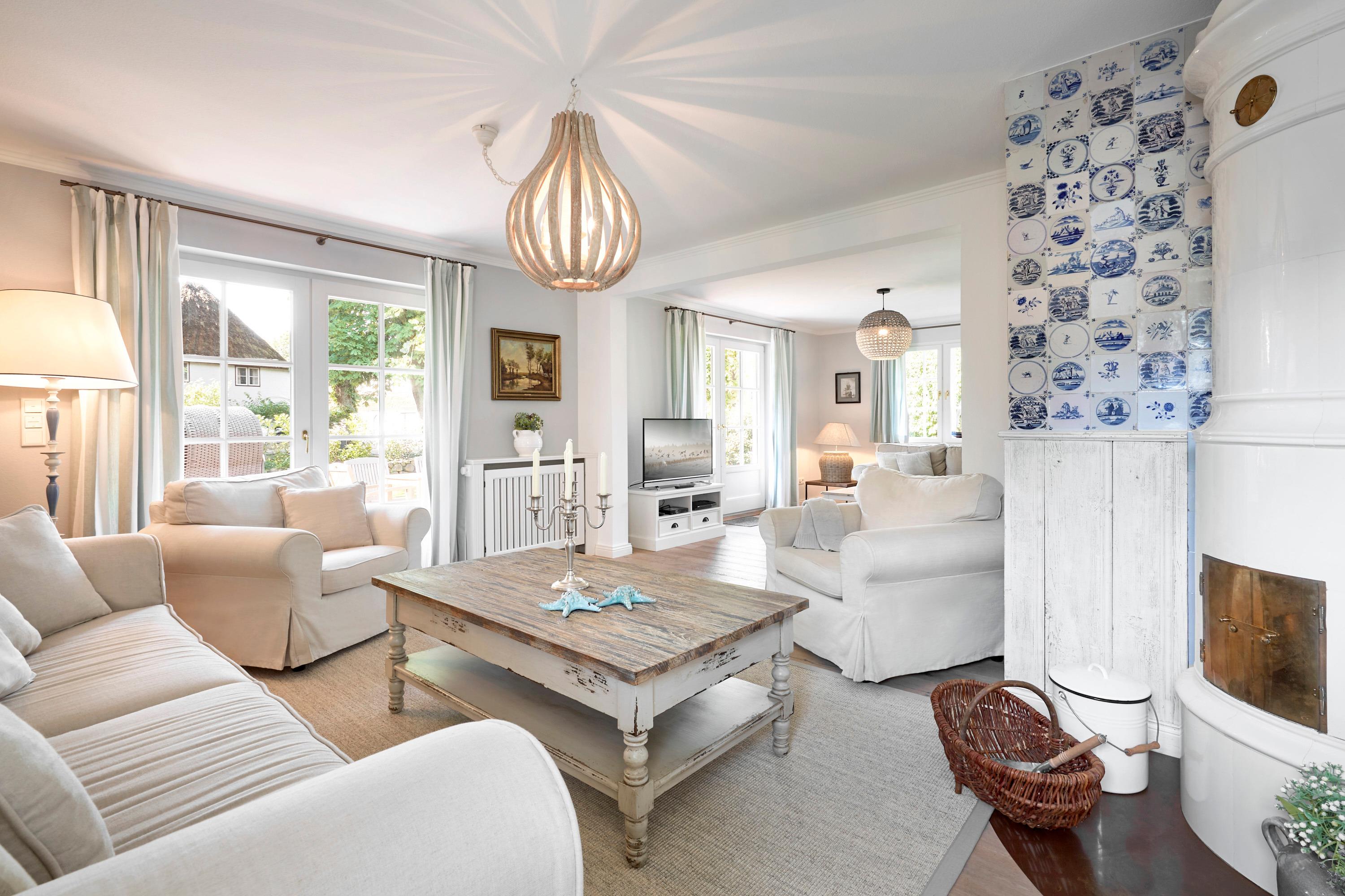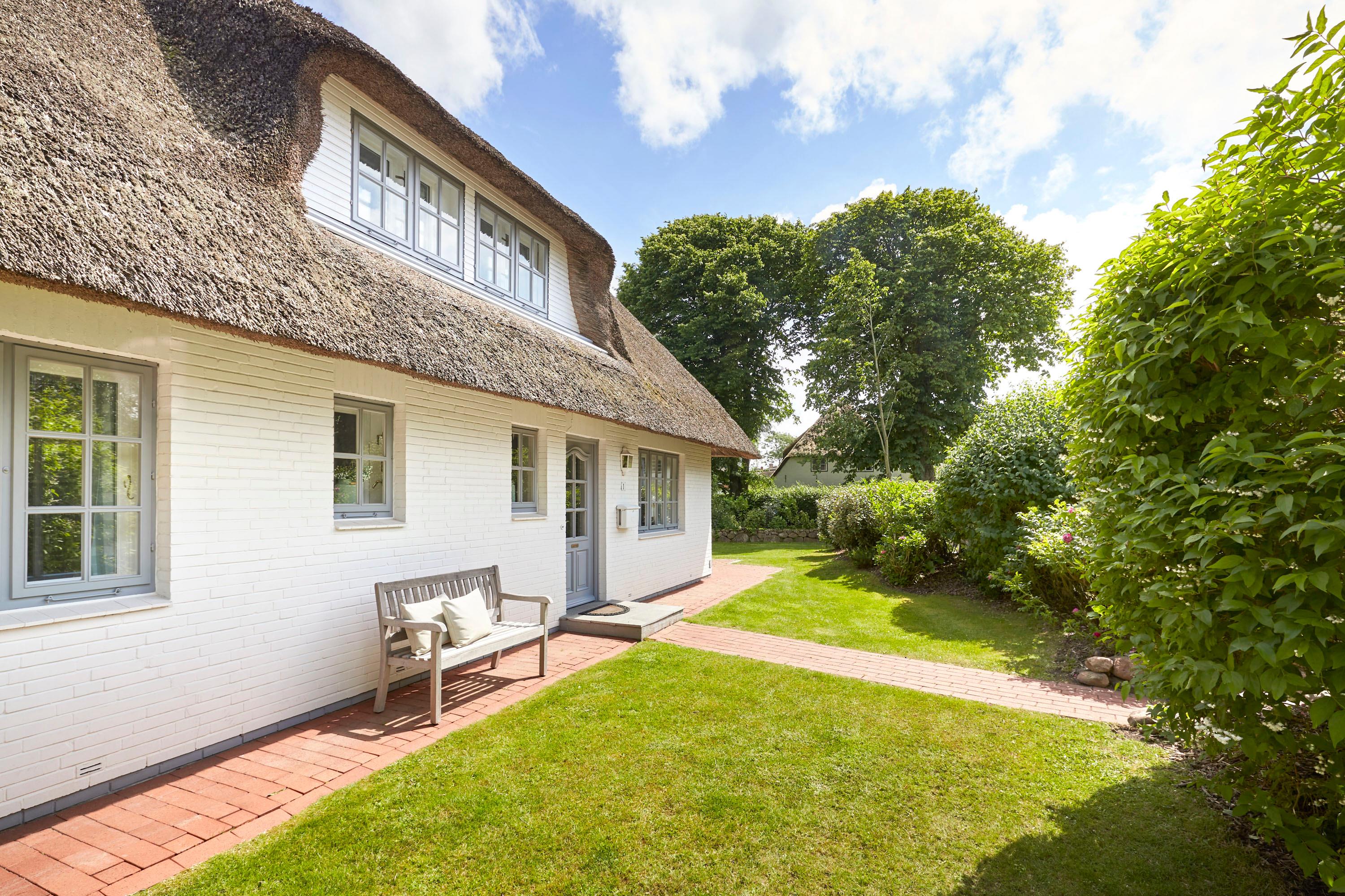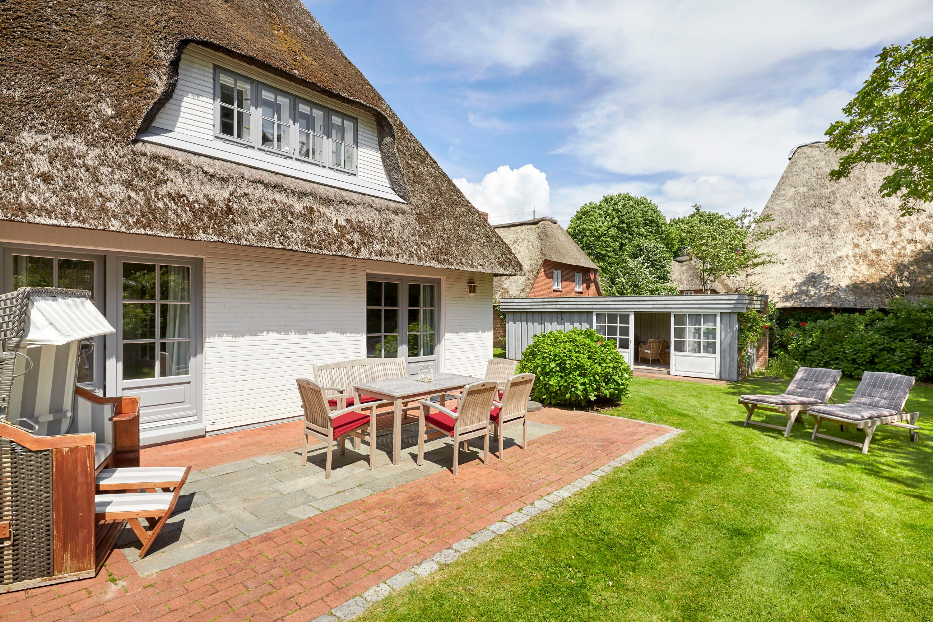 Herzlich willkommen in unserem Domizil in Nieblum. Dieses exklusive Einzelhaus, im Herzen von Nieblum gelegen, wird Sie begeistern. Das Reetdachhaus wurde komplett saniert und sehr geschmackvoll ausgestattet. Im großen Wohnbereich wurden antike Delfter Fliesen verwendet und der Mylin Kachelofen so bestens in Szene gesetzt. Ein Highlight ist sicherlich auch das Gartenhaus. Dies wurde als „Loungehaus“ zweckentfremdet. Durch die großen Glasflügeltüren kommt viel Licht in den Raum, und gerade am späten Nachmittag genießen Sie dort die Abendsonne und lassen so den Tag ausklingen. Wohnen Sie unter Reet im schönsten Dorf der Insel Föhr und genießen Sie Ihren Urlaub in vollen Zügen.