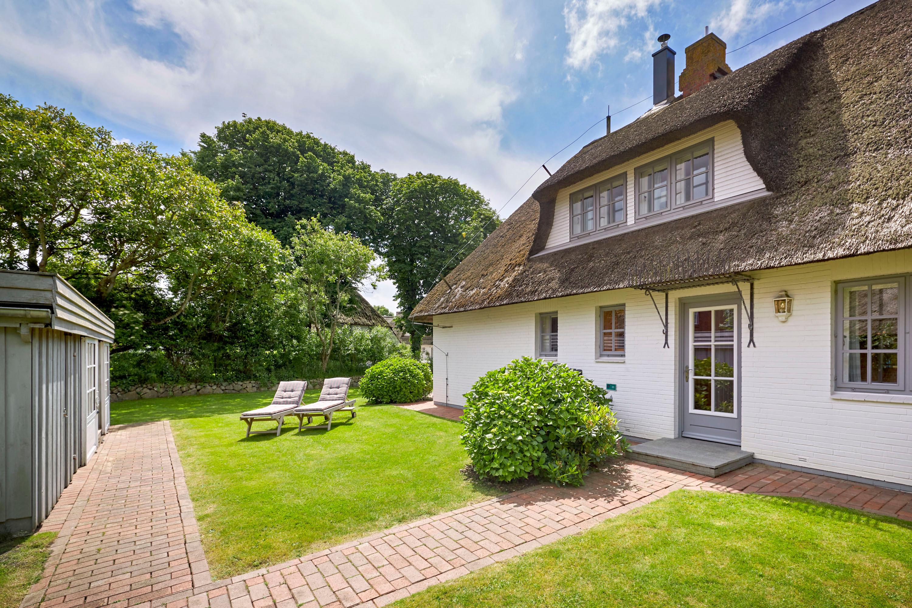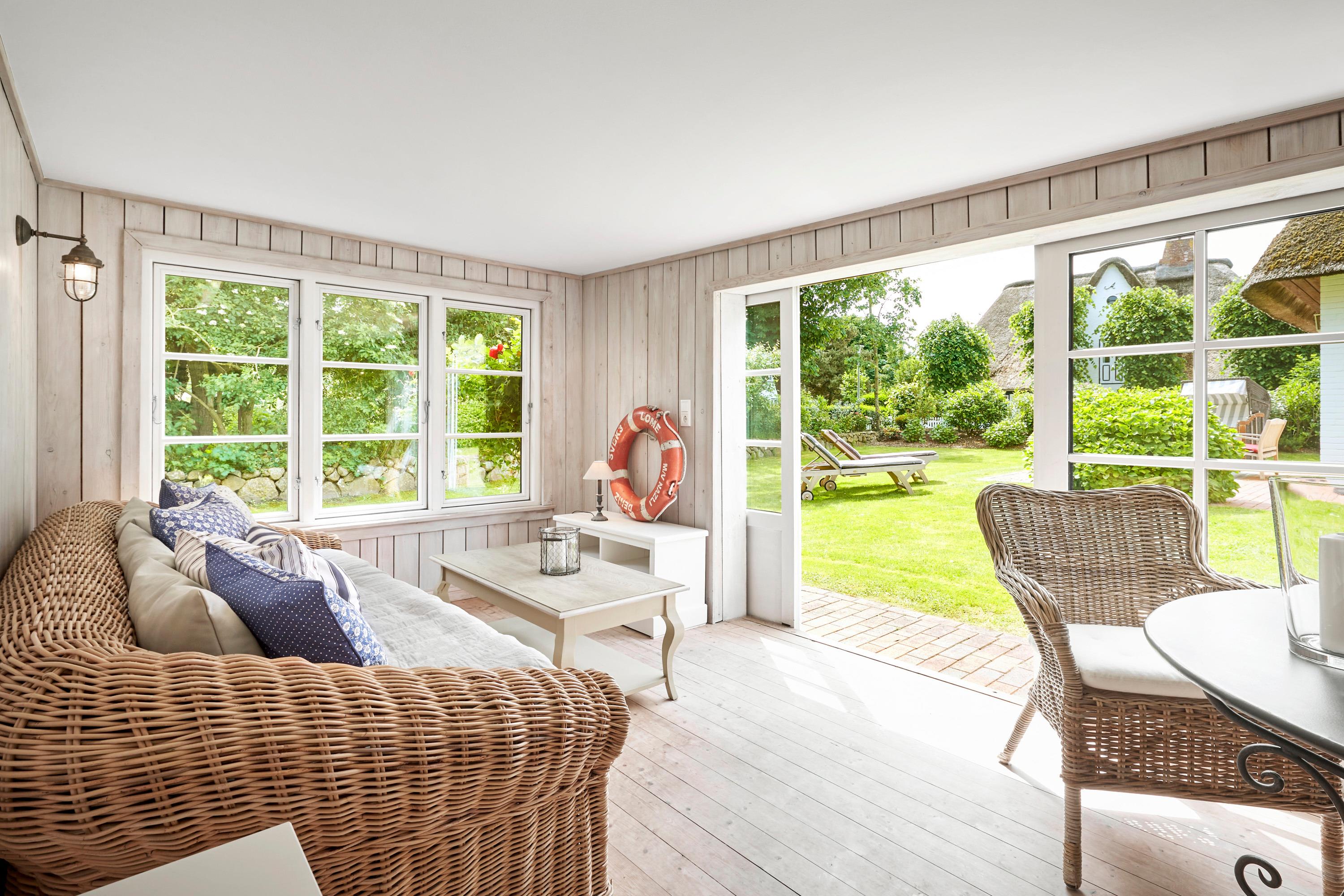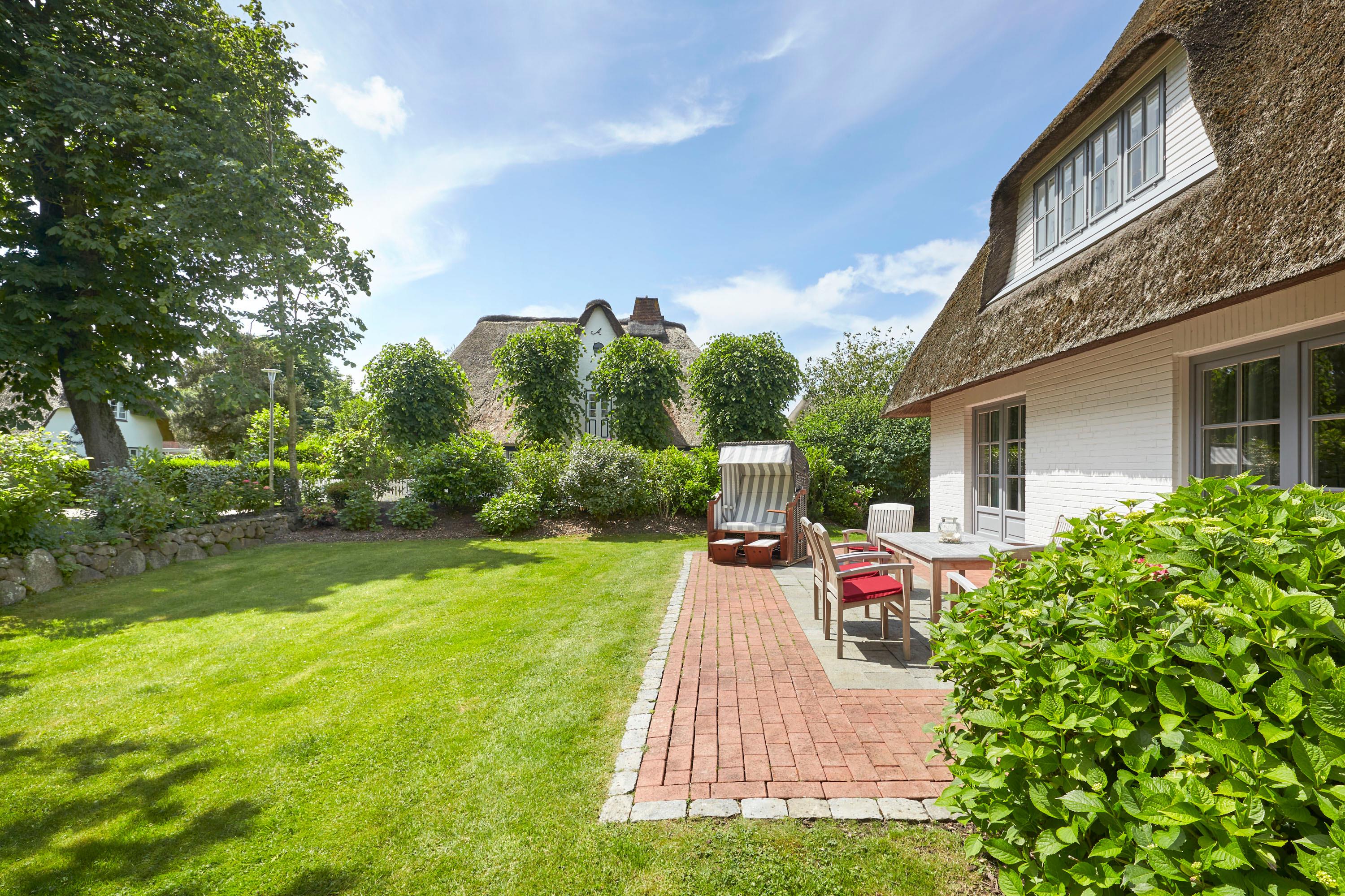 Herzlich willkommen in unserem Domizil in Nieblum. Dieses exklusive Einzelhaus, im Herzen von Nieblum gelegen, wird Sie begeistern. Das Reetdachhaus wurde komplett saniert und sehr geschmackvoll ausgestattet. Im großen Wohnbereich wurden antike Delfter Fliesen verwendet und der Mylin Kachelofen so bestens in Szene gesetzt. Ein Highlight ist sicherlich auch das Gartenhaus. Dies wurde als „Loungehaus“ zweckentfremdet. Durch die großen Glasflügeltüren kommt viel Licht in den Raum, und gerade am späten Nachmittag genießen Sie dort die Abendsonne und lassen so den Tag ausklingen. Wohnen Sie unter Reet im schönsten Dorf der Insel Föhr und genießen Sie Ihren Urlaub in vollen Zügen.