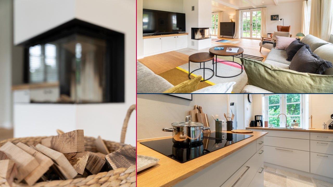 Zu den Highlights der Ferienunterkunft zählen wir u. a. den Kamin, die hauseigene Sauna, die hochwertige Ausstattung sowie die zwei Terrassenplätze.