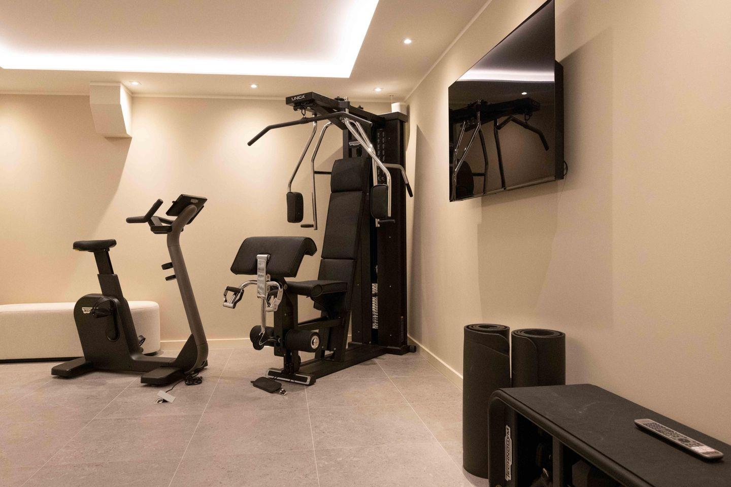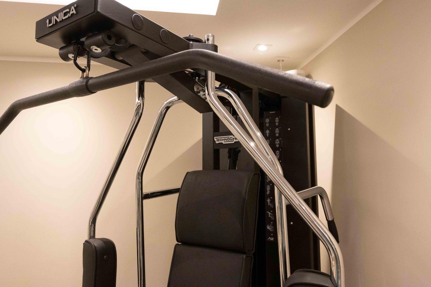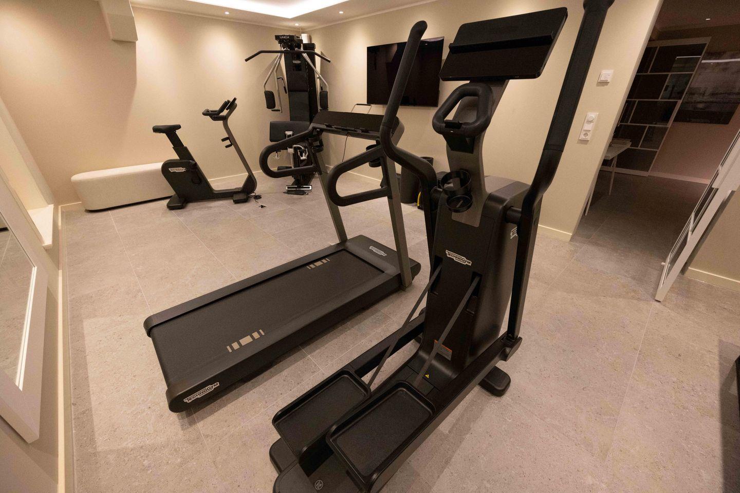 Das Souterrain ist ein weiteres Highlight dieses Hauses. Hier befinden sich neben einem Gäste-WC und einem Hauswirtschaftsraum mit Waschmaschine und Trockner, die großzügige und moderne hauseigene Sauna, mit Whirlwanne und Regendusche sowie ein Fitnessraum mit Geräten der Marke Techno Gym (Laufband, Stepper, Crosstrainer, Hantelbank, Kraftstation, Kleinequipment). Ein stylisches Dampfbad mit Regendusche stehen Ihnen in einem weiteren Raum ebenfalls zur Verfügung.