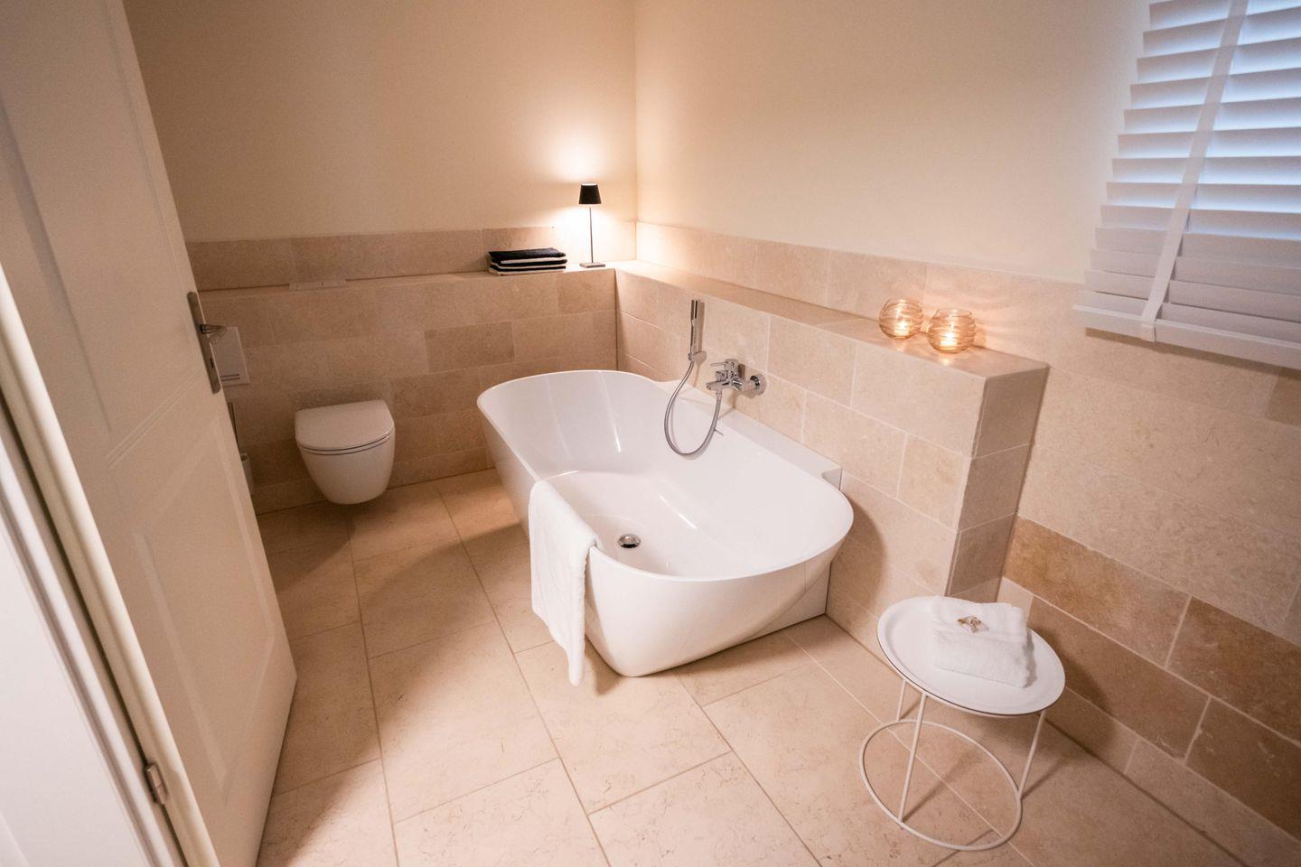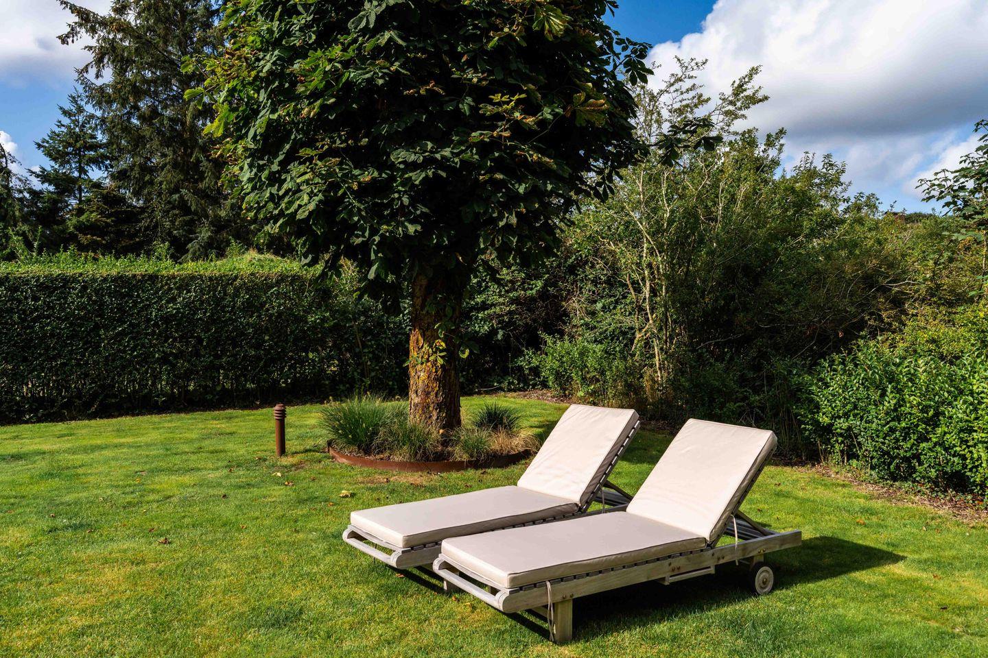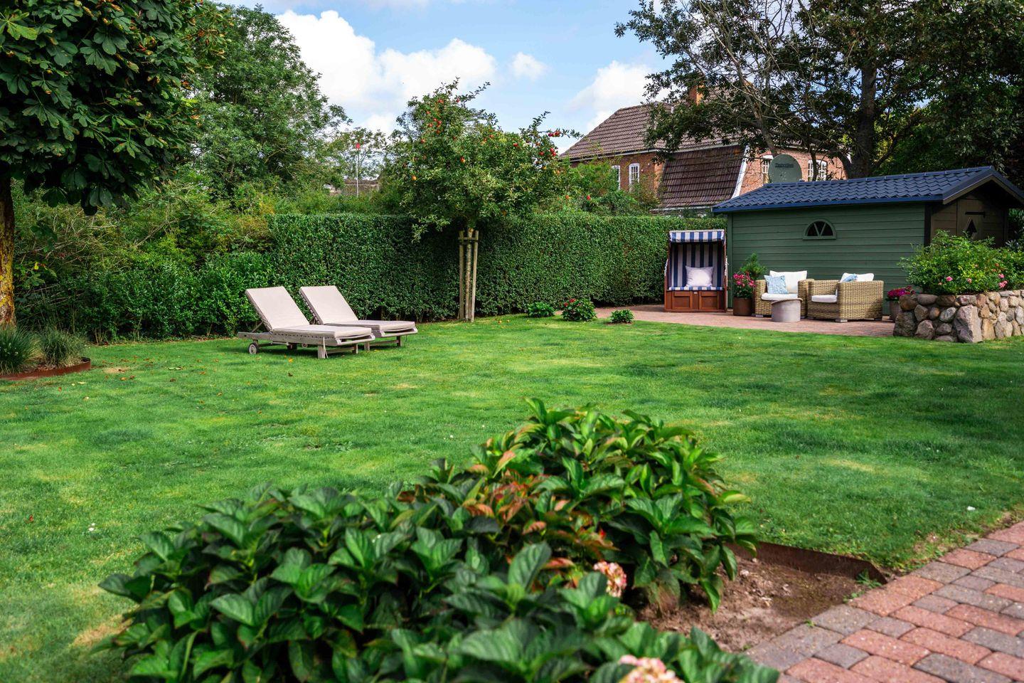 An Sonnentagen genießen Sie den Garten mit Strandkorb und Liegen und träumen Sie unter der großen Kastanie. Im Gartenhaus haben Sie ganzjährig Platz, noch zwei Fahrräder abzustellen. Bei kühlem Wetter entspannen Sie im Wellnessbereich und am antiken Kamin.
