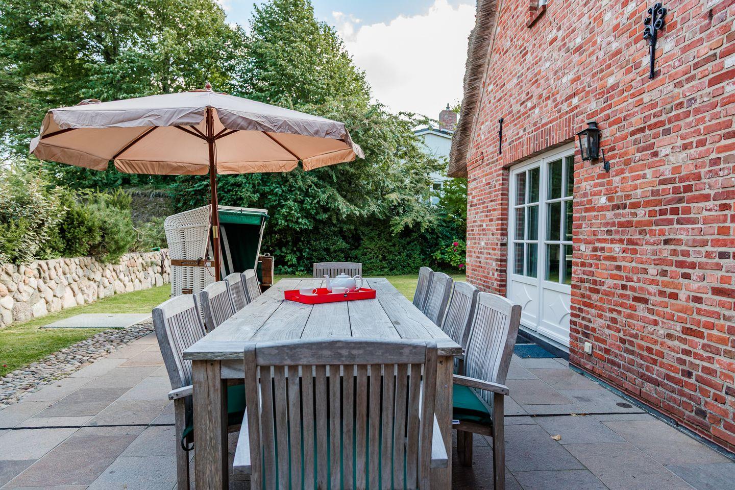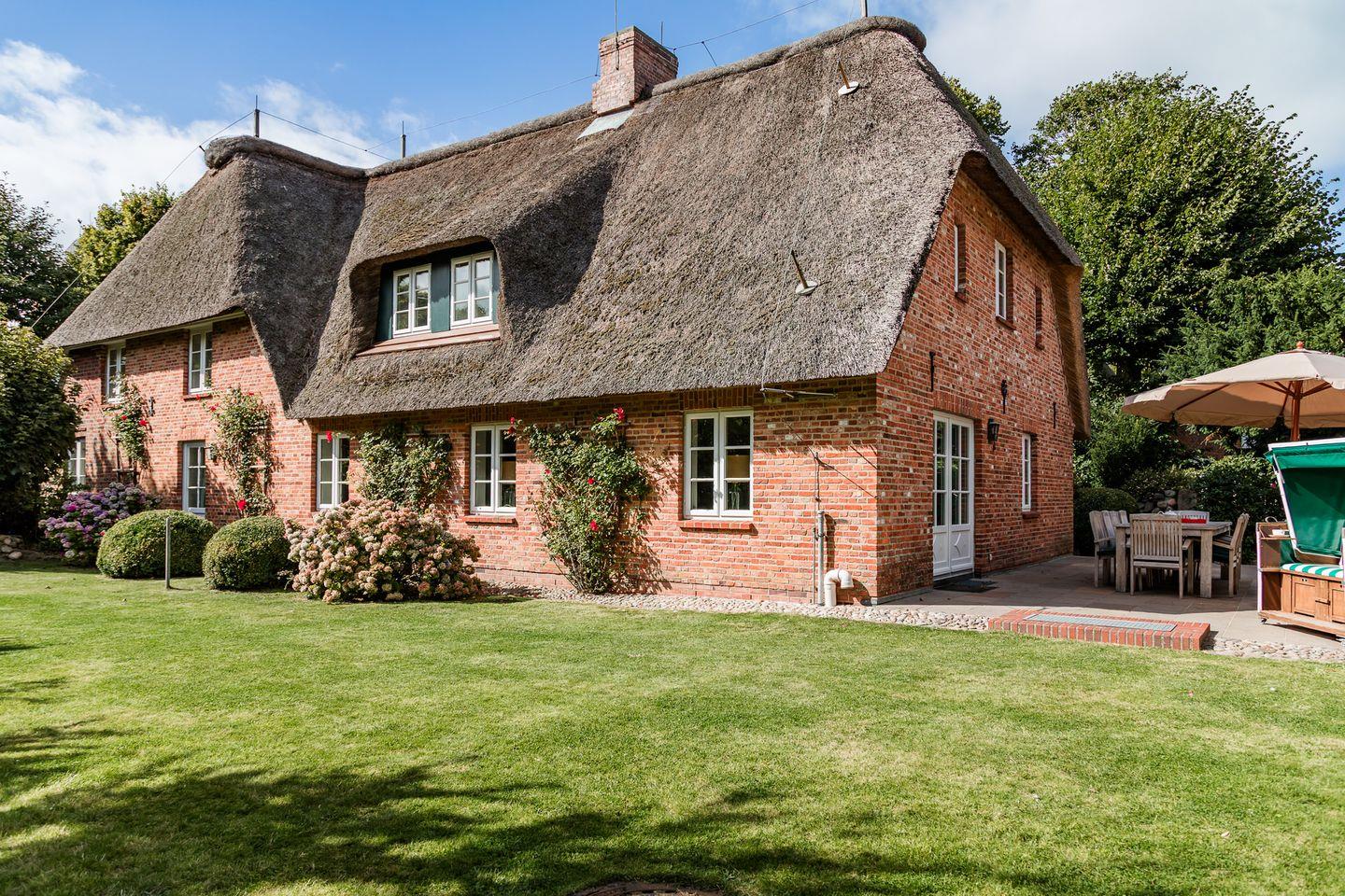 Historisches Reetdachhaus im Herzen von Nieblum mit Sauna, Kachelofen, Garten und Terrasse.