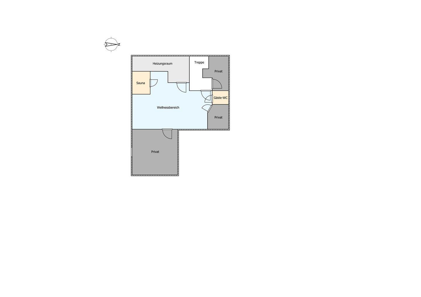 Im Souterrain stehen Ihnen die hauseigene Sauna mit separater, offener Dusche im Wellnessbereich, sowie das Gäste-WC zur Verfügung.
