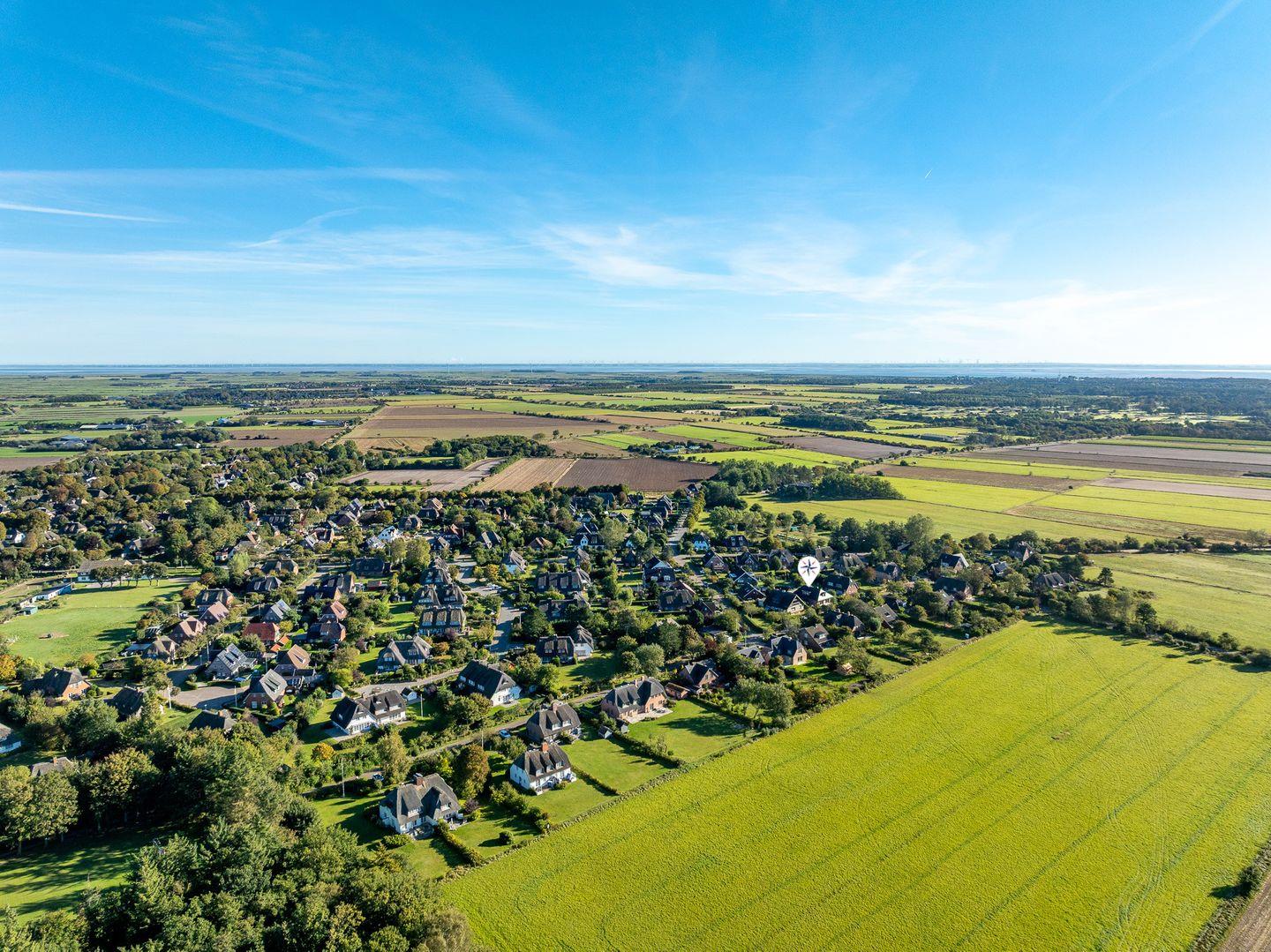 Das Haus Westerheide ist ruhig gelegen im schönen Kapitänsdorf Nieblum. Von hier aus laufen Sie 10 Minuten zum Sandstrand von Nieblum und wenige Gehminuten zum Zentrum. Hier befinden sich zahlreiche Cafés und Restaurants. Auch einen kleinen Einkaufsladen und einen Bäcker finden Sie im Dorf.