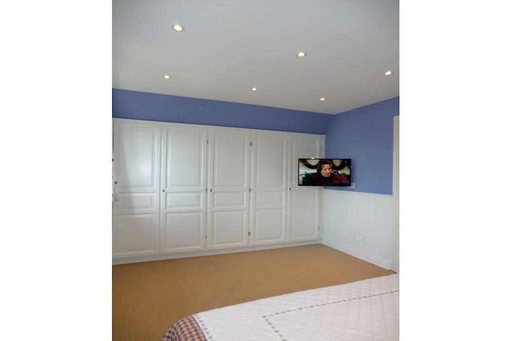 , , , Køkken(kogeplade, ovn, køleskab), stue / spisestue(, Fjernsyn, spisebord, pejs), soveværelse(, dobbeltseng, Fjernsyn), soveværelse(, , enkeltseng), soveværelse(, enkeltseng, enkeltseng), badeværelse(, toilet, badekar, bruser, håndvask), badeværelse(, toilet, bruser, håndvask), guest toilet(toilet, håndvask), Internetadgang, tørretumbler, vaskemaskine, varme(, tørretumbler, vaskemaskine, strygebræt, strygejern), varme, terrasse(havemøbler), have, parkering, parkering, strygebræt, strygejern, loungemøbler, tørreskab, telefon