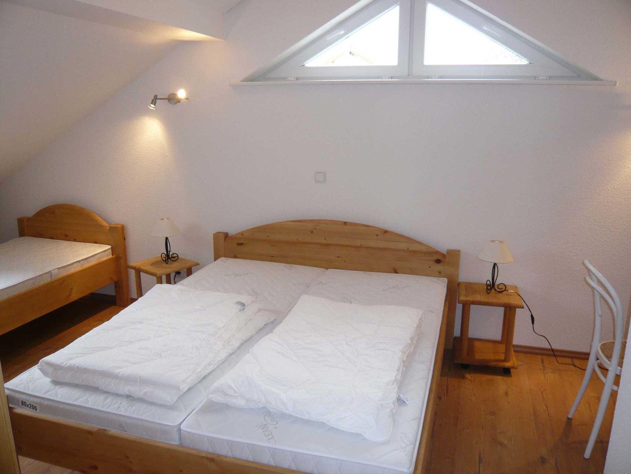 Die Ferienwohnung Freya befindet sich im 1. Stock, ist ca. 68 qm groß und bietet ausreichend Platz für 2 Personen. Großer Wohnraum mit offener Küche, 1 Schlafzimmer mit Doppelbett und einem Einzelbett. Freya verfügt über einen großen Balkon zur Garten- und Seeseite. Entfernung zum Strand: 150 Meter!