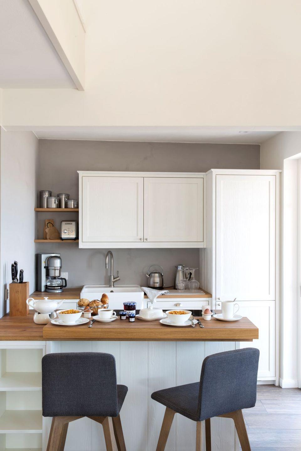 Alle Zimmer sind bis ins letzte Detail liebevoll eingerichtet mit einer Ausstattung auf höchstem Niveau. Vom Besteck über die Elektrogeräte bis zur Biobaumwolldecke finden Sie ausschließlich hochwertige Markenprodukte, ergänzt durch eigens entwickelte und gefertigte Echtholz-Möbel und Textilien.