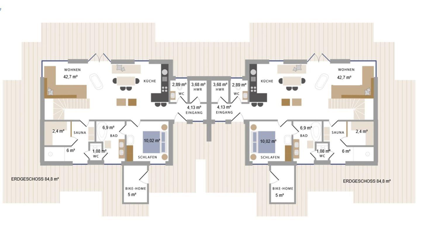 Im angebauten Bike-Home befinden sich die hauseigenen Sonnenliegen, Ihr Elektrogrill und natürlich haben Sie hier die Möglichkeit Fahrräder sicher und trocken unterzustellen.