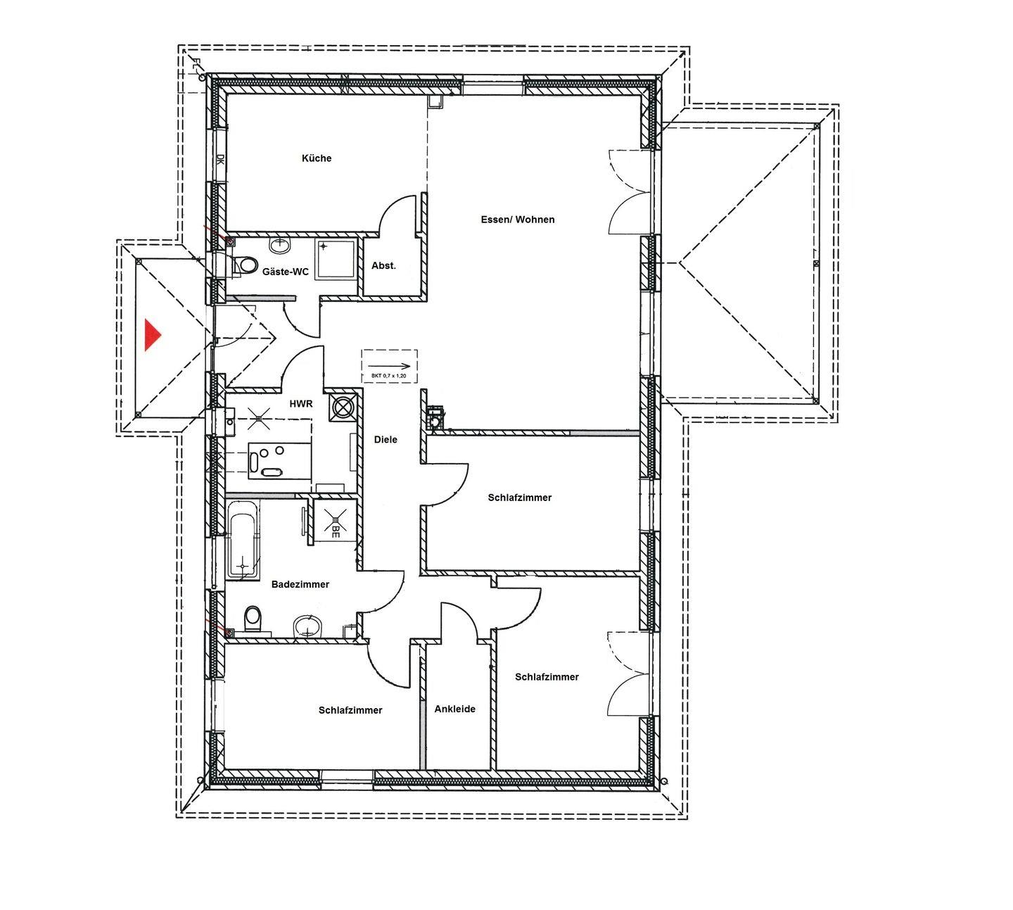 Gleich zu Beginn wird der Bungalow durch den großzügigen Flur -ausgestattet mit Bewegungsmelder- betreten und führt in den offenen Wohn-/ Esszimmerbereich, welcher durch den schönen Kaminofen zu gemütlichen Abenden einlädt.