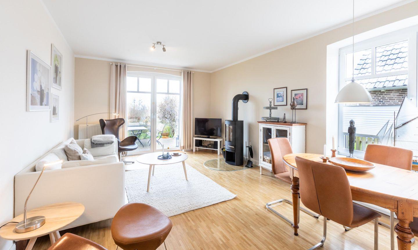 Stillvoll eingerichtete und kürzlich renovierte Ferienwohnung mit einem Kaminofen. Im großen Garten befindet sich ein Grillplatz, der schöne Stunden garantiert.