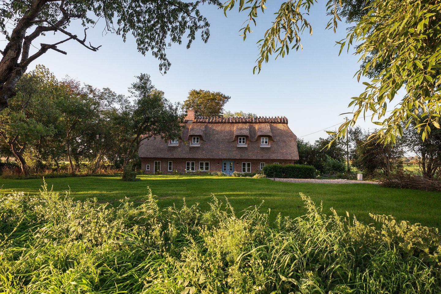 Entzückende Reetdachkate am Feldrand mit Kamin