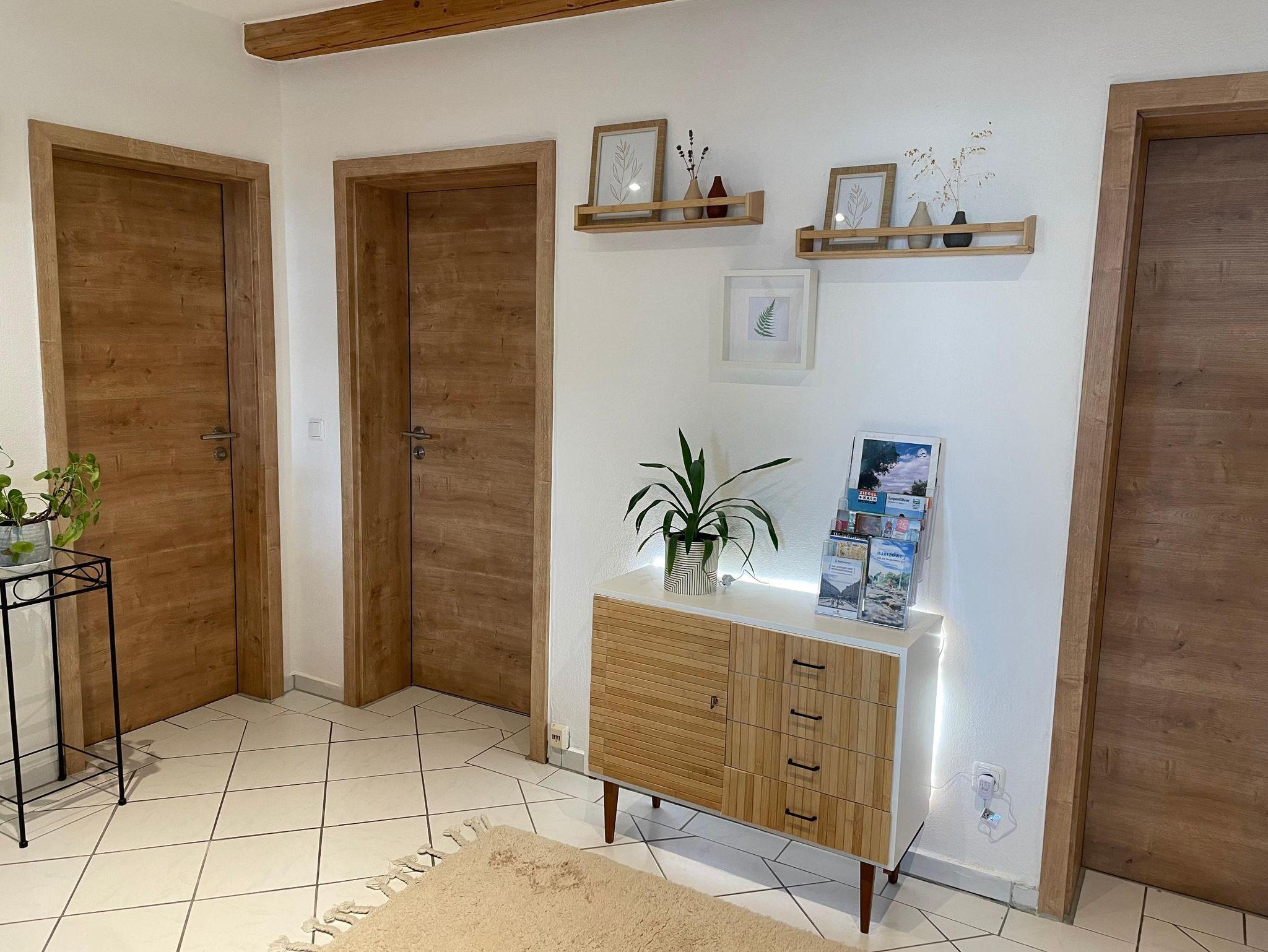 Es erwartet Sie eine Ferienwohnung (100m²) mit separatem Eingang, welcher über eine Treppe ins Obergeschoß führt.