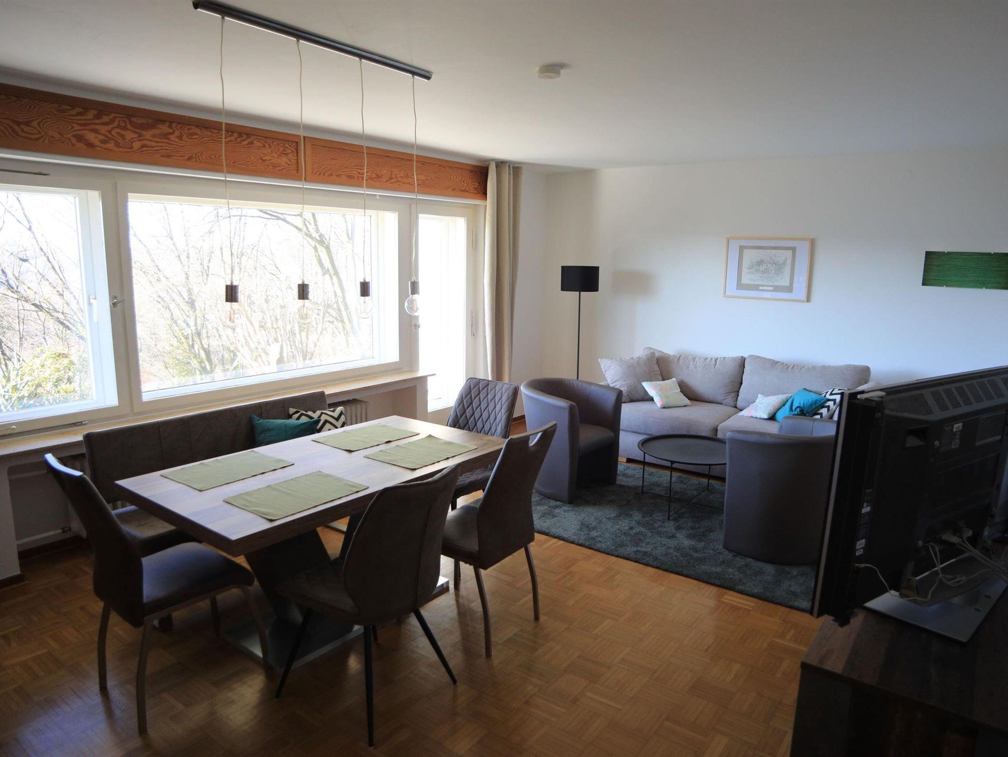 kombiniertes Wohn-/Esszimmer: ca. 30 m², Schlafsofa, TV, Esstisch für 6 Personen