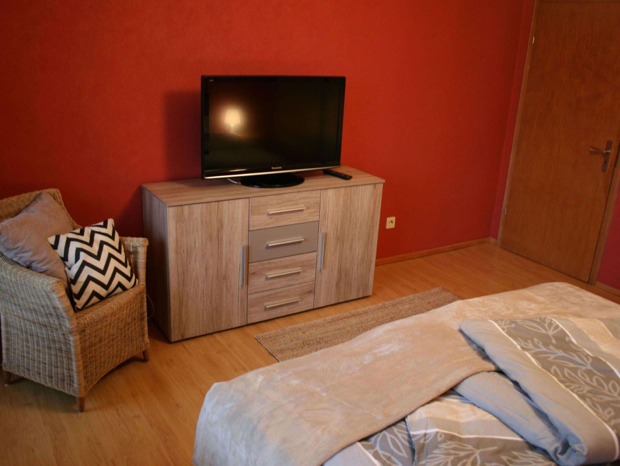 Schlafzimmer 1: 1 Doppelbett (180 x 200 cm), Kleiderschrank, Kommode, SAT-TV