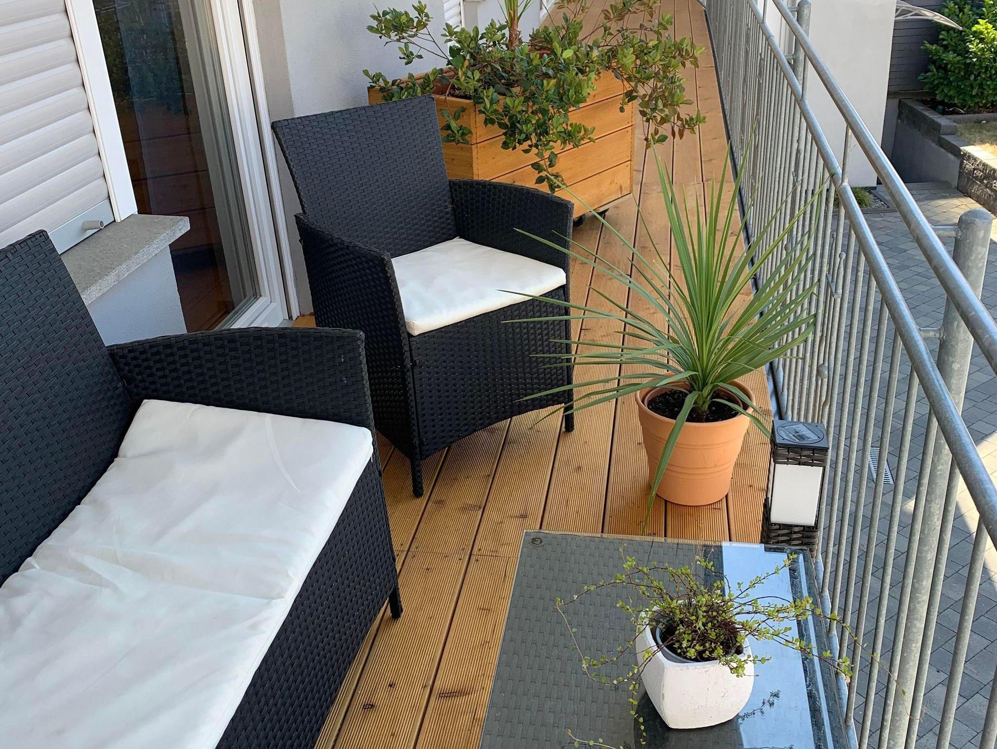 Neue , moderne und helle Ferienwohnung. Modern und zeitgemäß eingerichtet. 1. Stock mit Balkon und eigener, abschliessbarer Garage und separaten Fitnessraum. In jedem Raum elektrische Jalousien, barrierefreises Bad.
