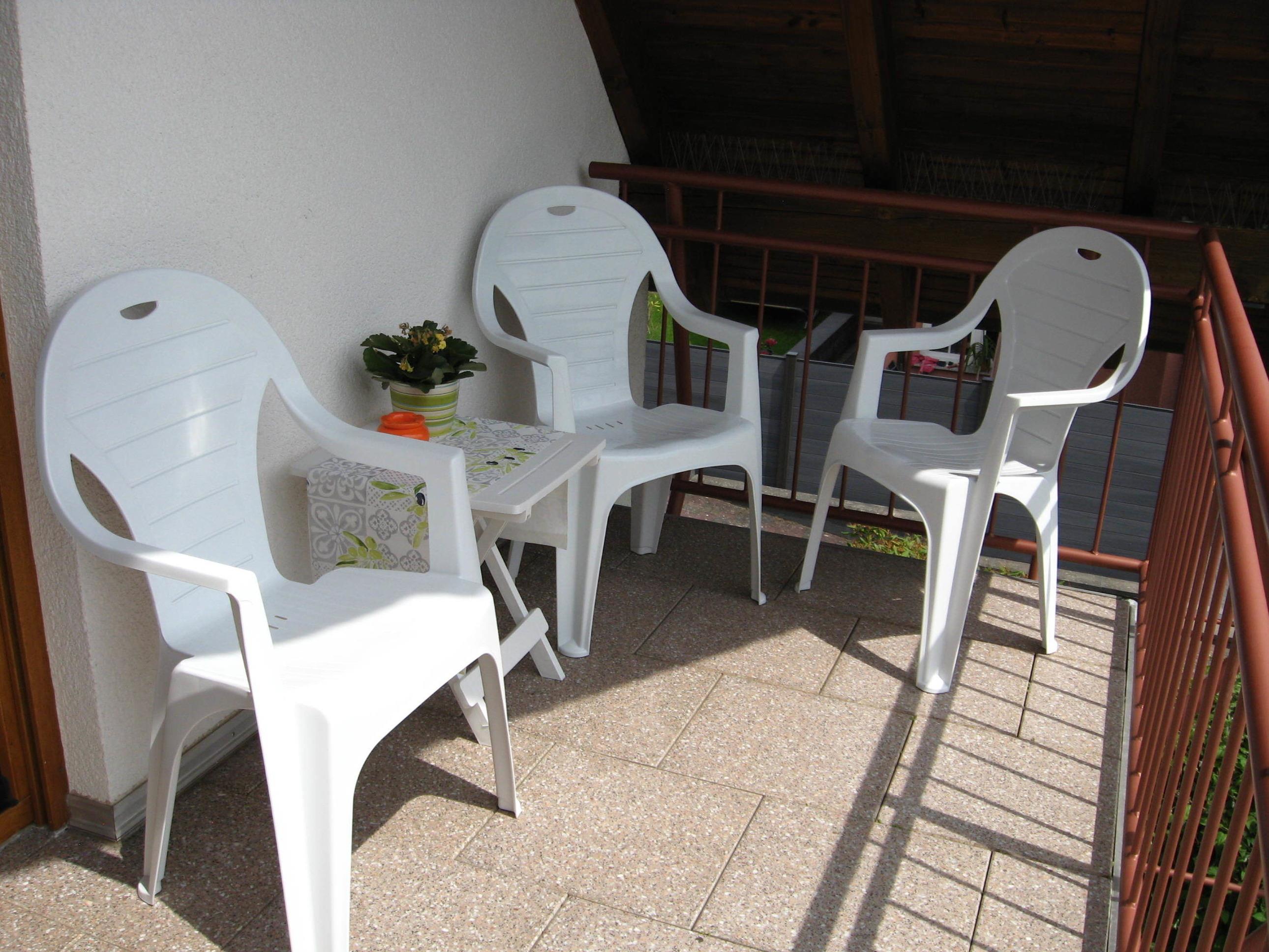Der sonnige Platz auf dem Balkon bietet Ihnen eine schöne Aussicht zur Burg und in die Umgebung.