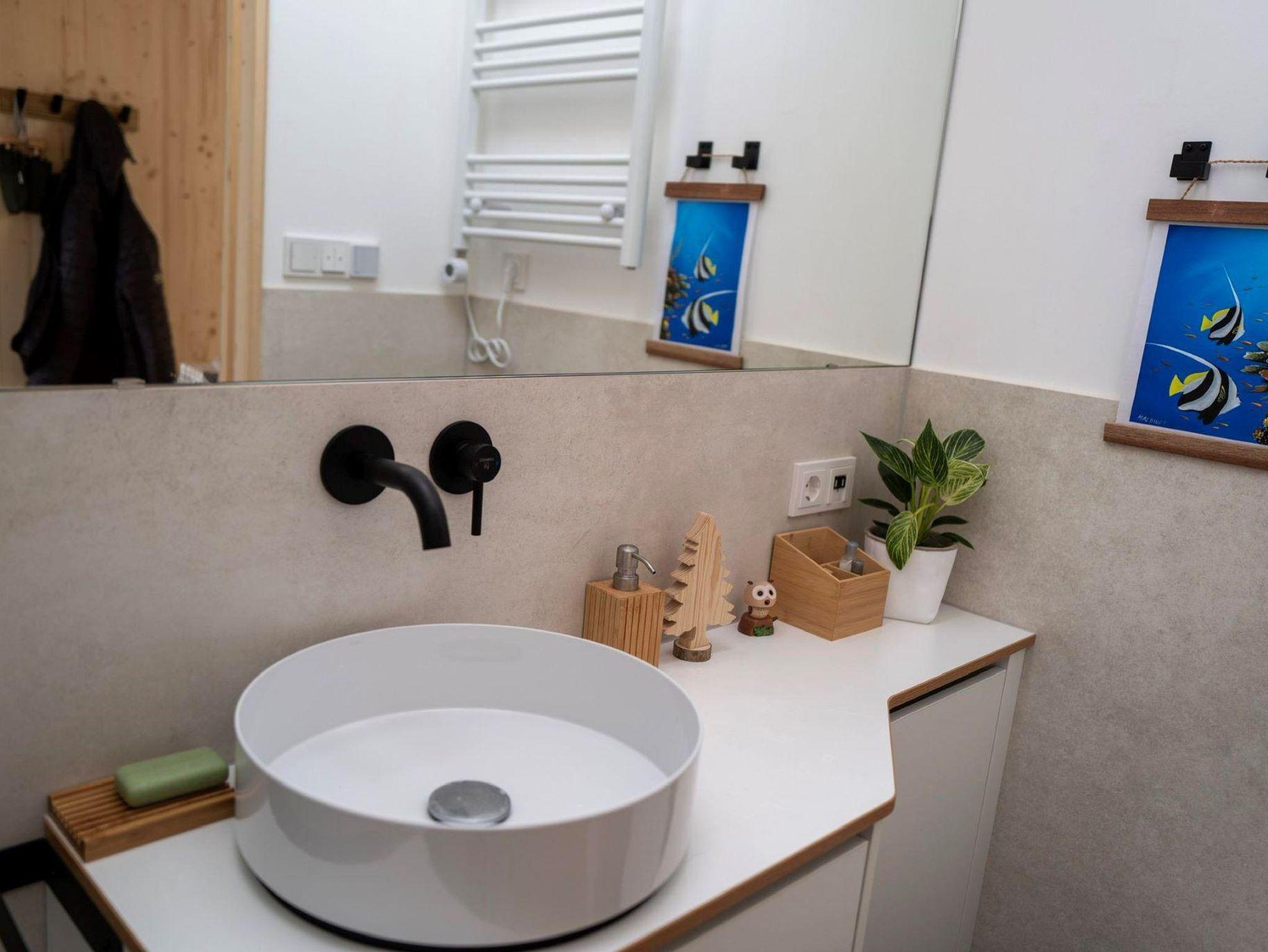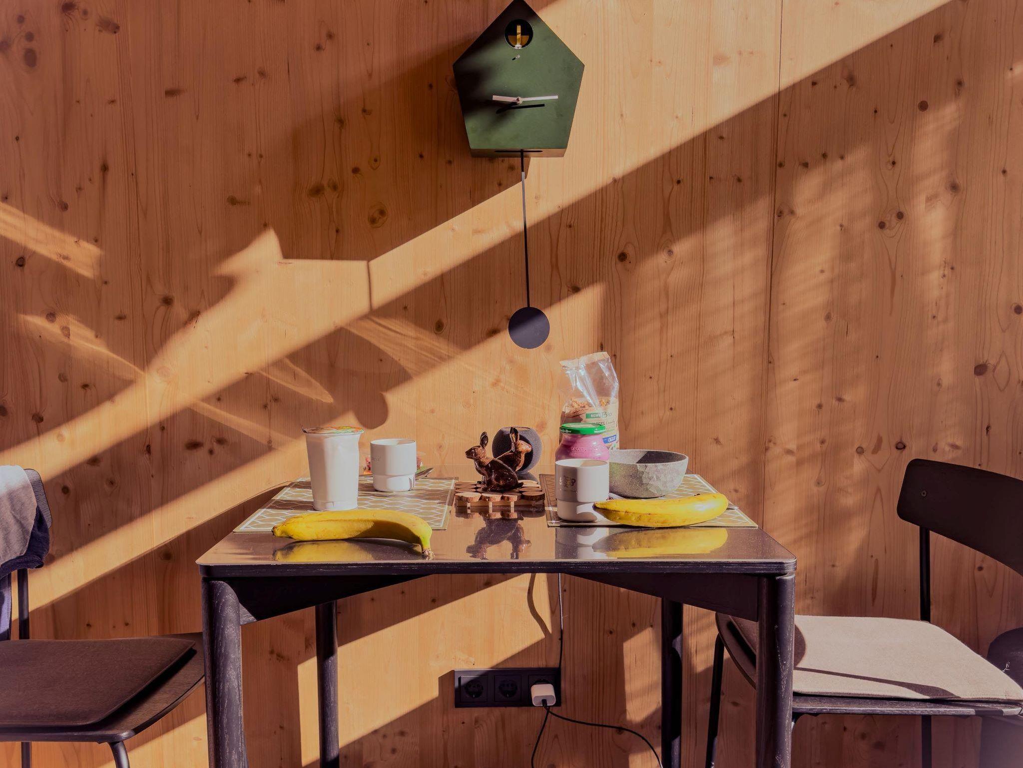 Die Cabin ist hochwertig eingerichtet. Die meisten Einrichtungsgegenstände sind handgemacht und aus der Region. Das Design ist minimalistisch.