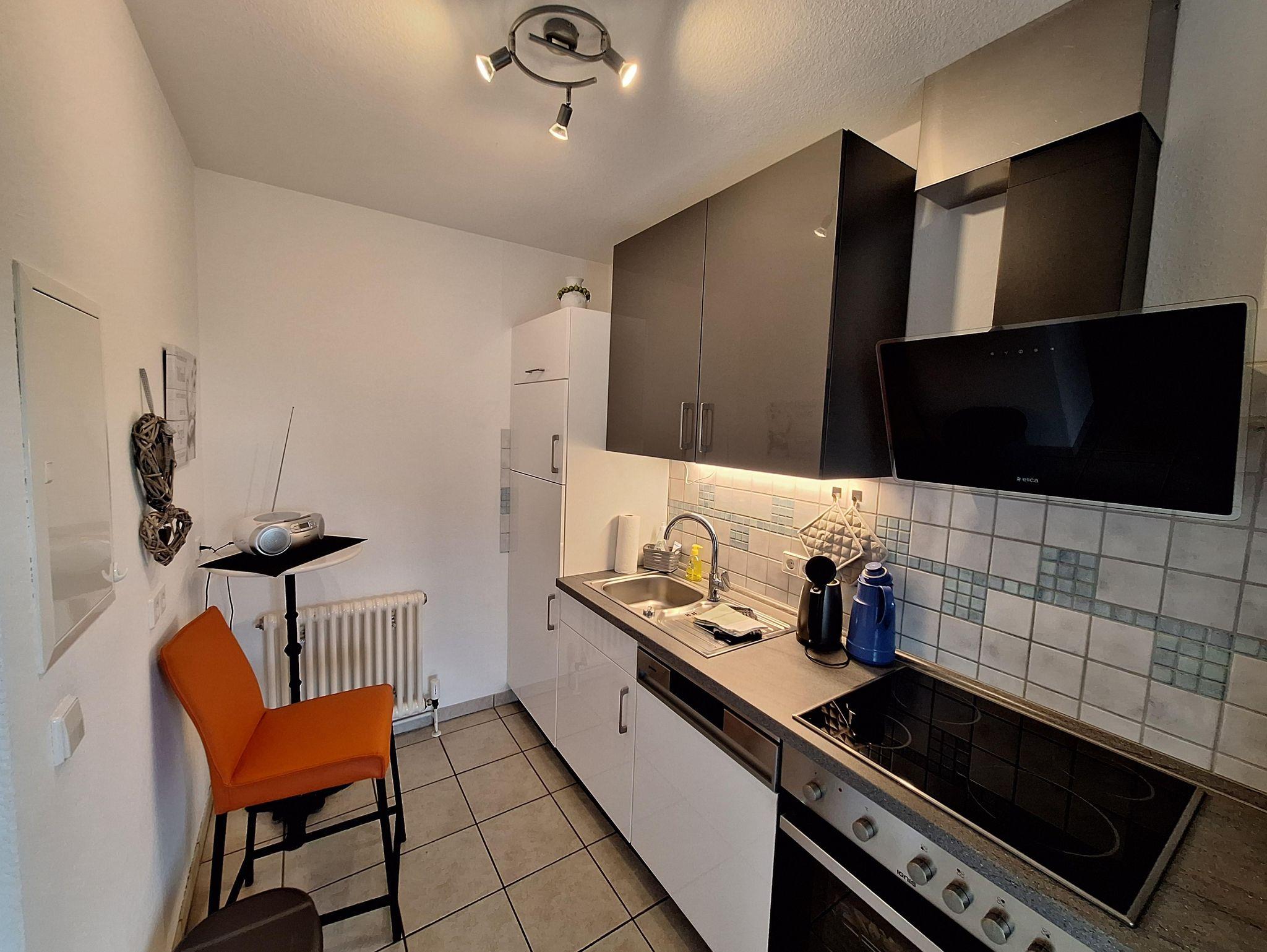 Der große, helle und freundliche Wohnraum ist mit einem Doppelbett (1,60 m x 2 m), zwei-Sitzer Couch, einem TV Schrank mit Flachbildfernseher sowie einer vollausgestatteten und separaten Küchenzeile mit Essplatz versehen. Die Küche ist u.a mit Cerankochfeld mit Dunstabzugshaube, Spülmaschine, Kühlschrank, Kaffeemaschine, Toaster und Wasserkocher ausgestattet. Die Terrasse zur Alleinnutzung macht unsere Ferienwohnung zu einem lohnenswerten Urlaubsdomizil. Morgens lädt die Terrasse zum Frühstücken ein und am Abend können Sie den Tag im Sonnenuntergang und mit Blick in die Weinberge ausklingen lassen.